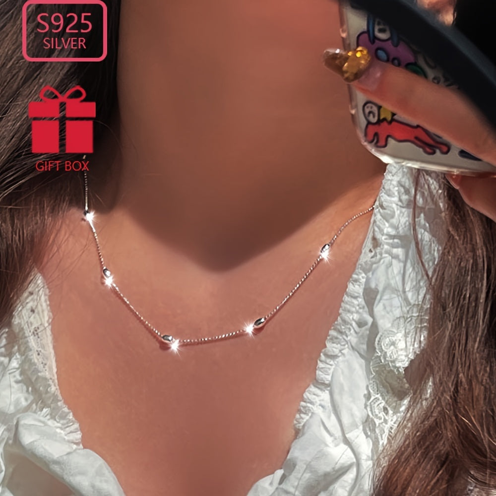 Elegante S925 Sterling -Silber -Halskette mit Olivenperlenkette. Perfekt für tägliche Verschleiß und Datierung.