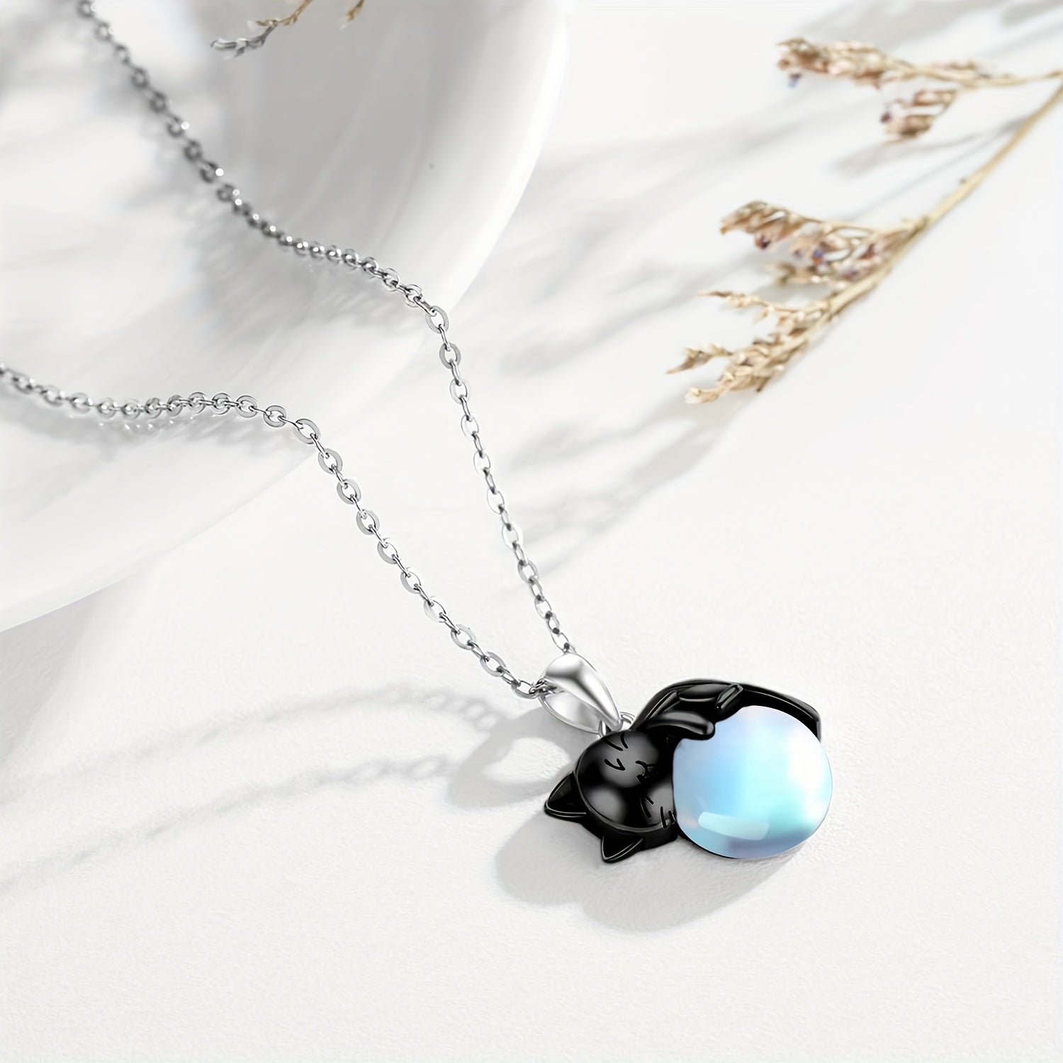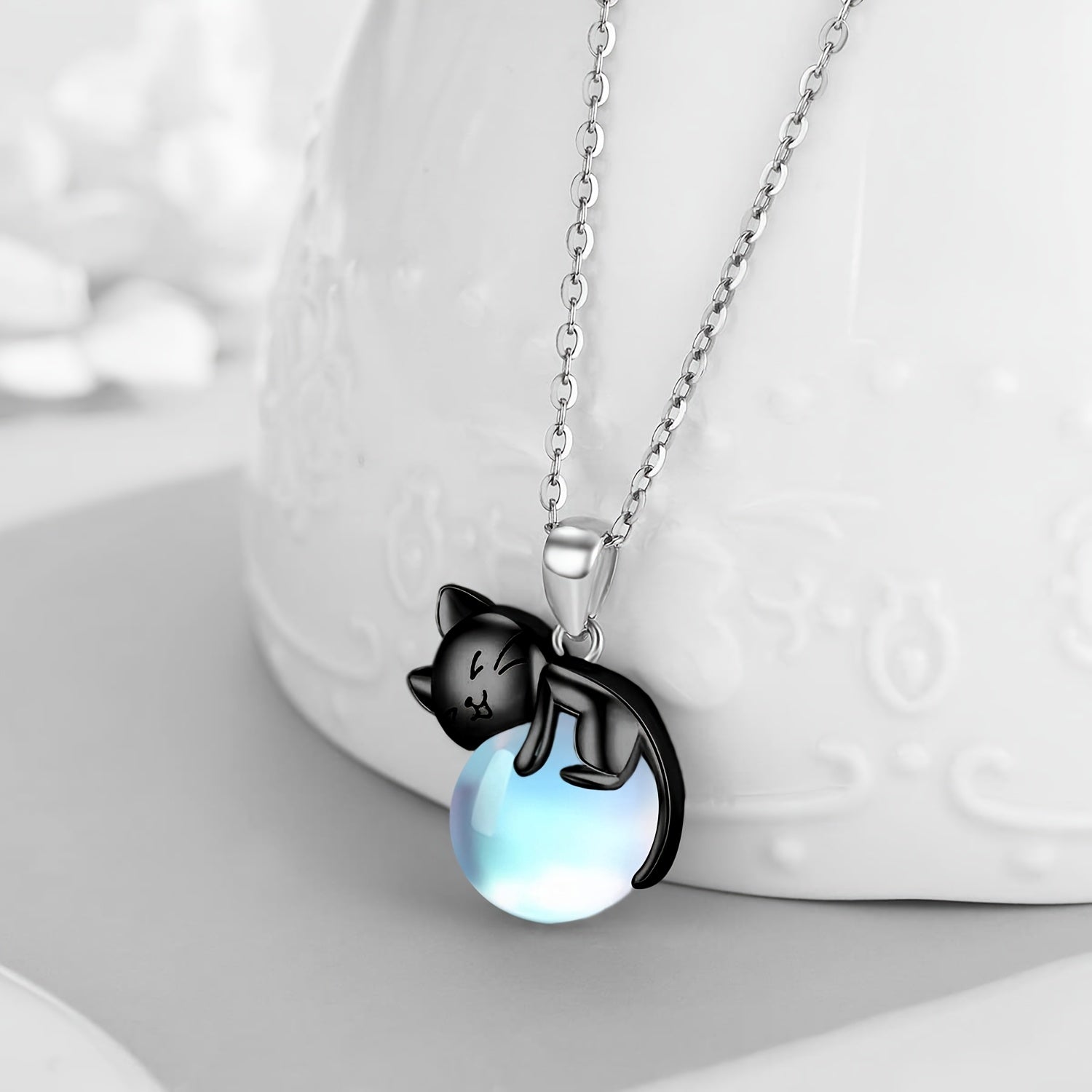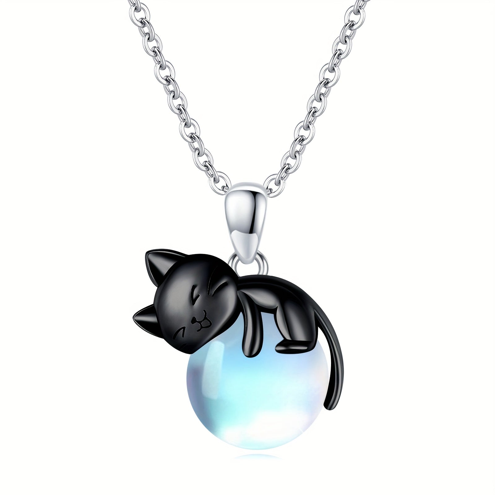 Schmücken sich mit dieser eleganten 925 Sterling Silver Cat -Halskette mit einem Mondsteinkatze -Anhänger. Ein perfektes Schmuckgeschenk für Ihre geliebte katzliebende Frau.