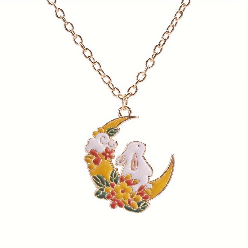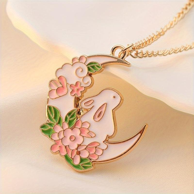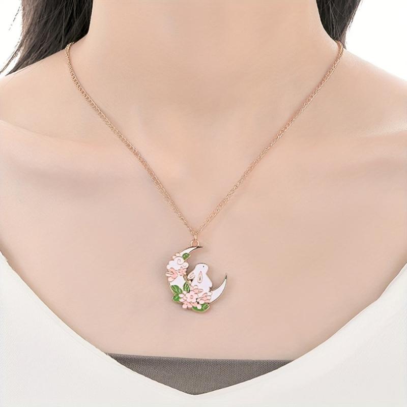 This Moon Rabbit Pendant Necklace is a stylish and elegant accessory crafted from high-quality zinc alloy. Perfect for parties or as a gift for someone special. The adjustable length makes it suitable for all.