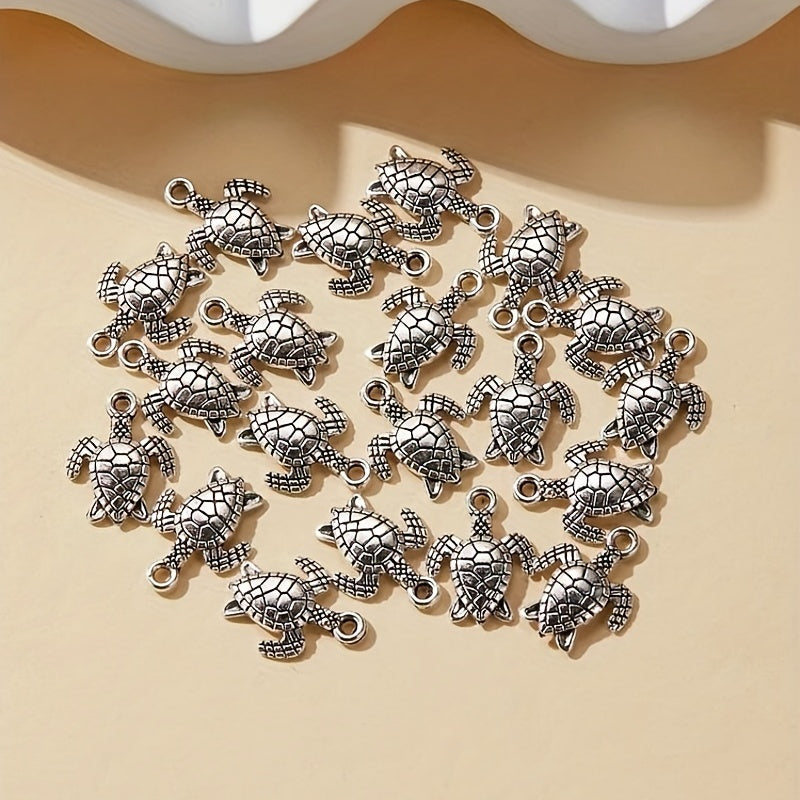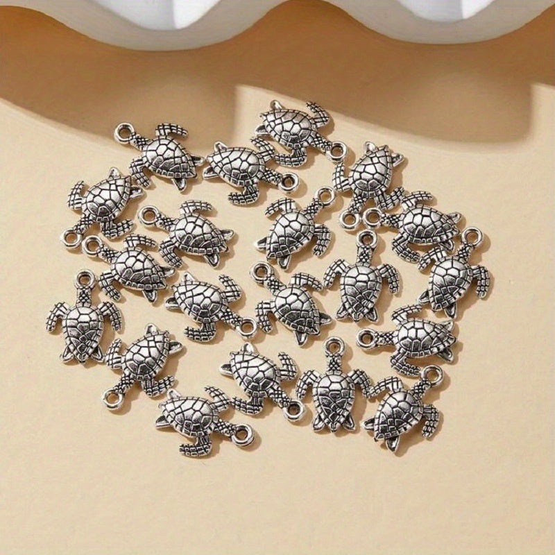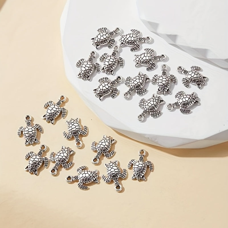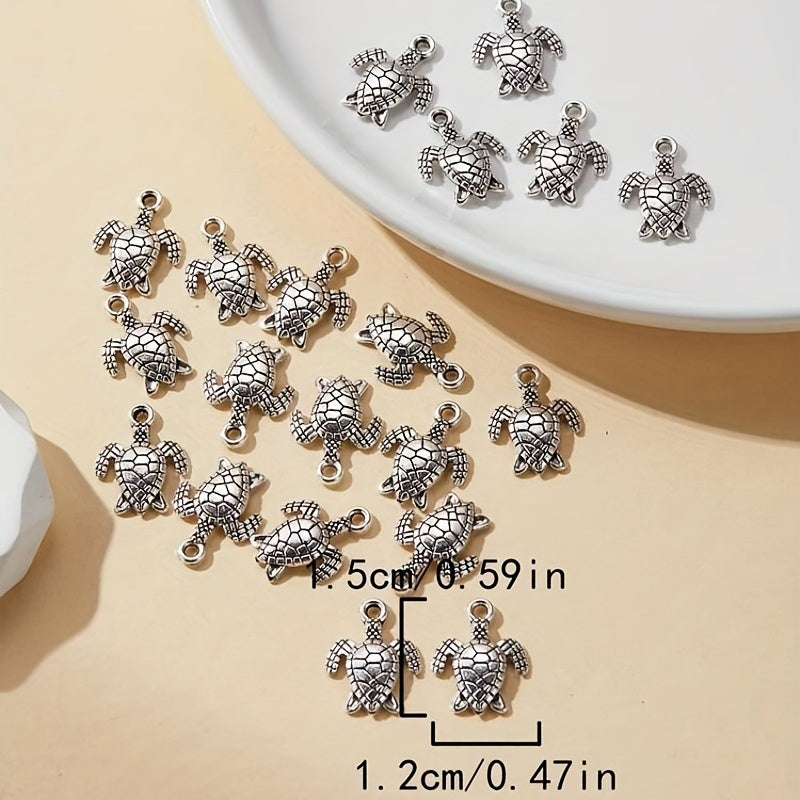 Get creative with this set of 20 ocean-themed zinc alloy turtle shape pendants perfect for making your own unique jewelry pieces.