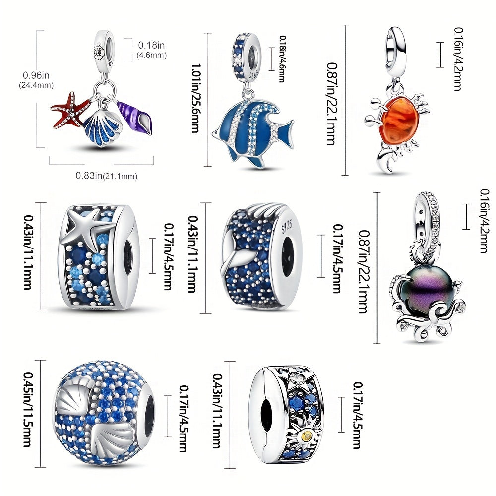 Enhance your jewelry creations with these ocean-themed charm pendant beads. Each bead features a unique design including a crab, octopus, shell, and more. Perfect for creating personalized jewelry pieces.
