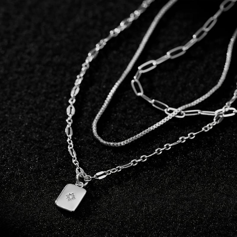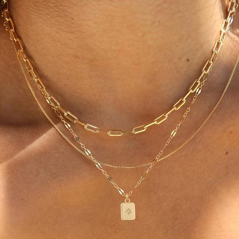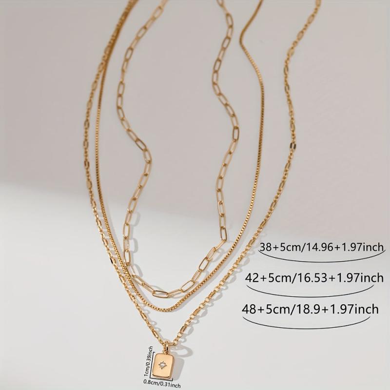Elegant 3-piece set featuring square paperclip box chain necklaces with sparkling zirconia pendant. Ideal for women who love stylish accessories.