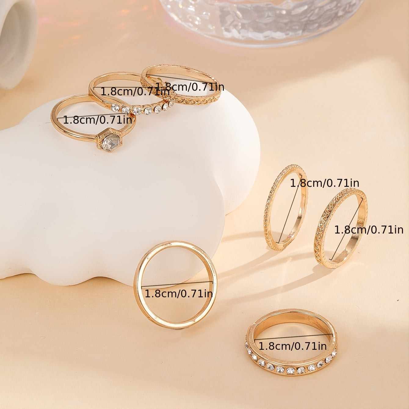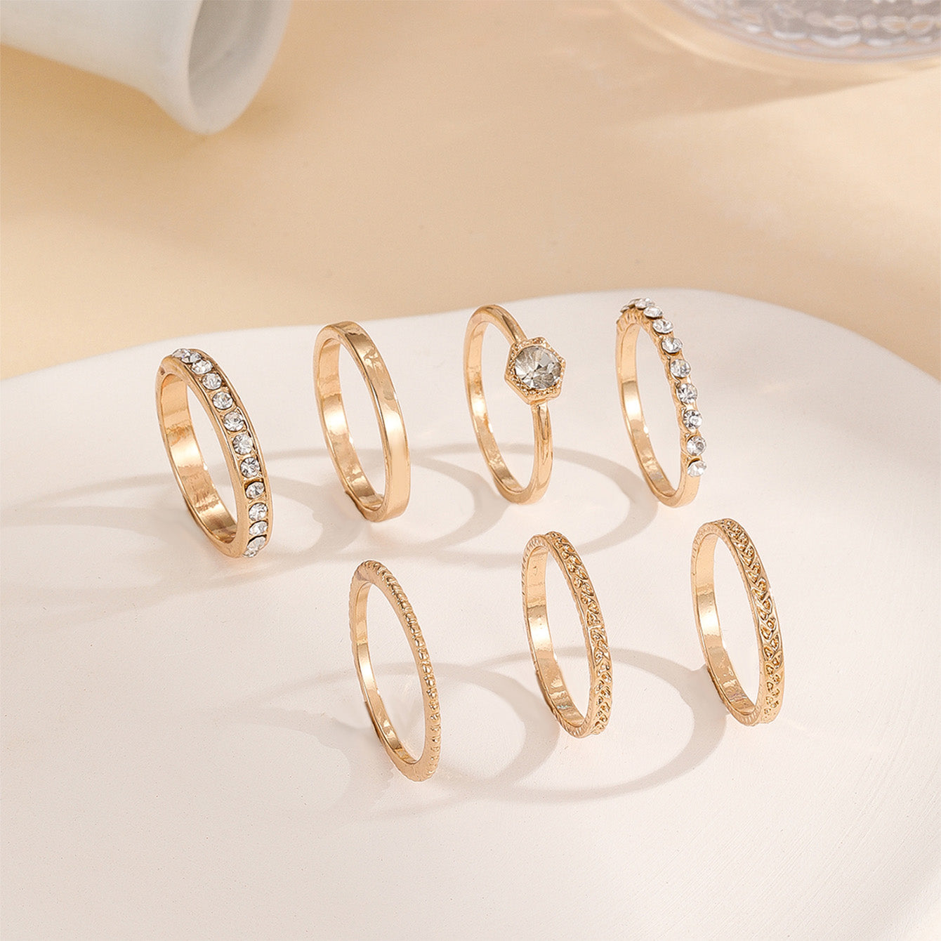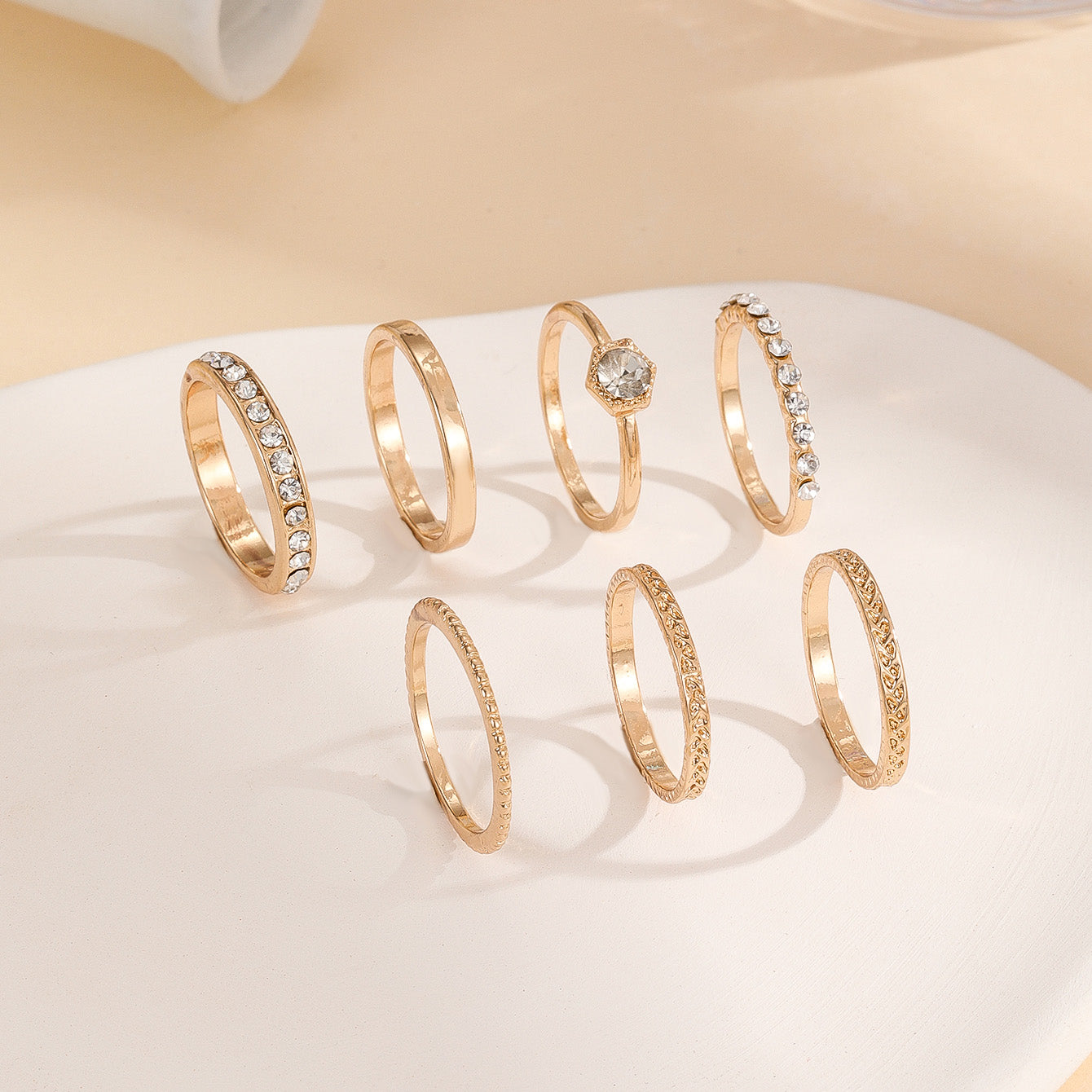 • 7-piece set of rhinestone rings