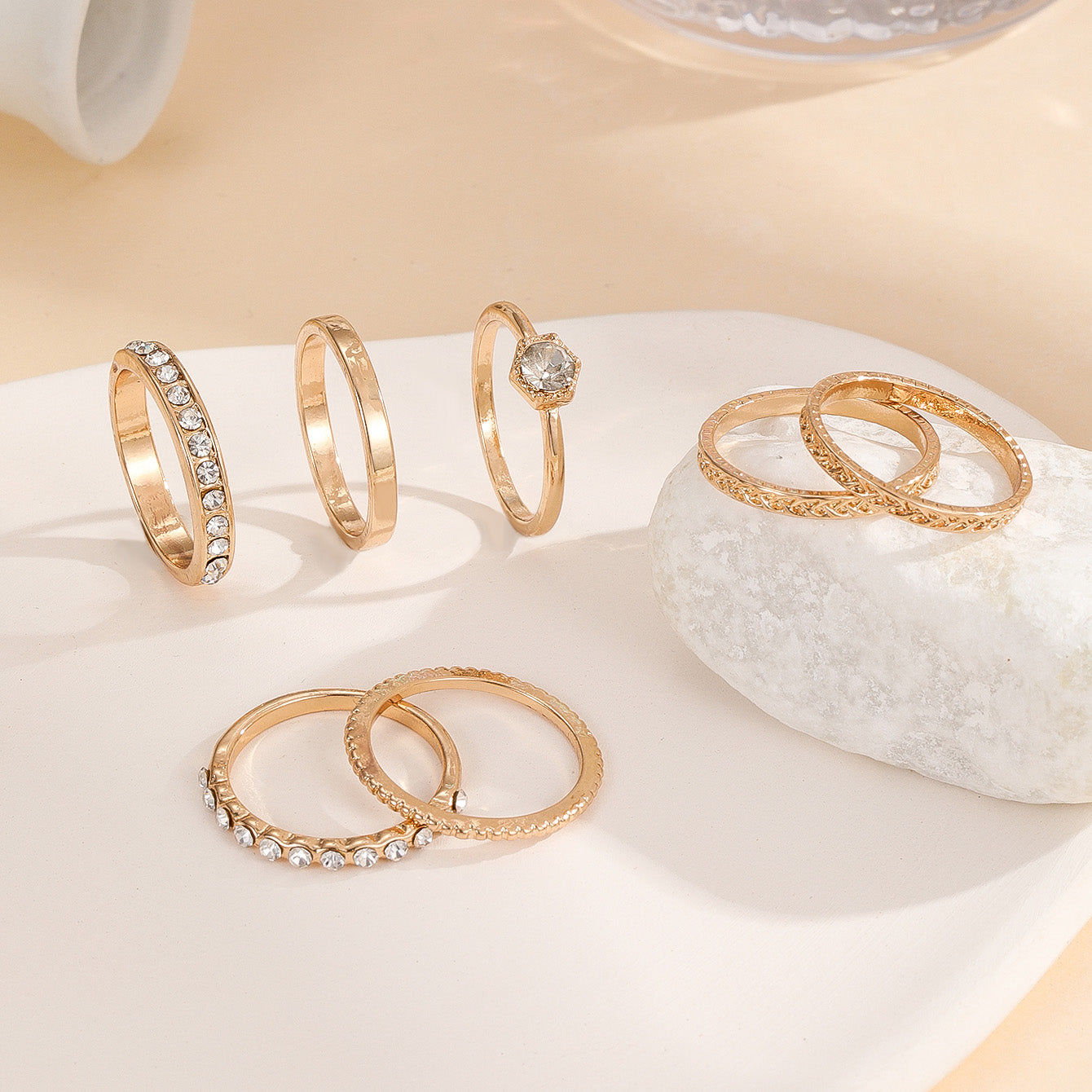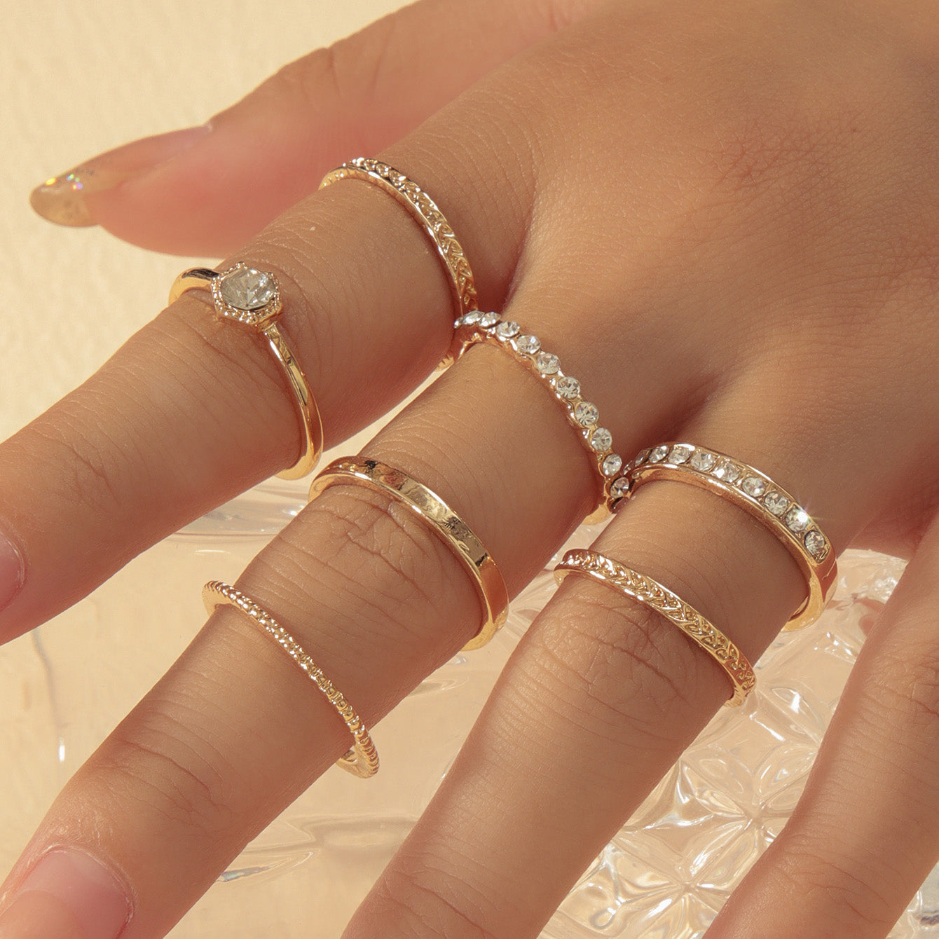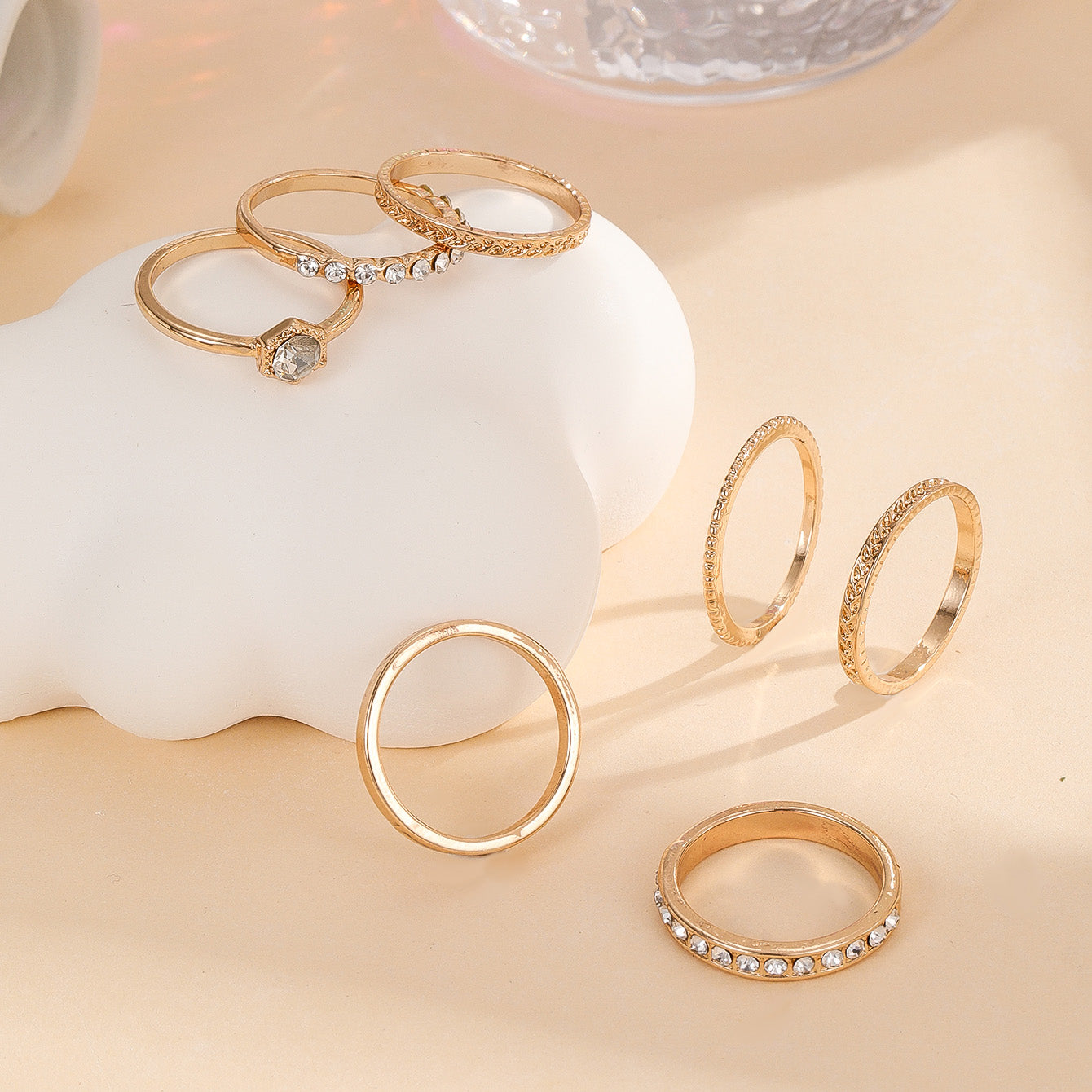 • 7-piece set of rhinestone rings