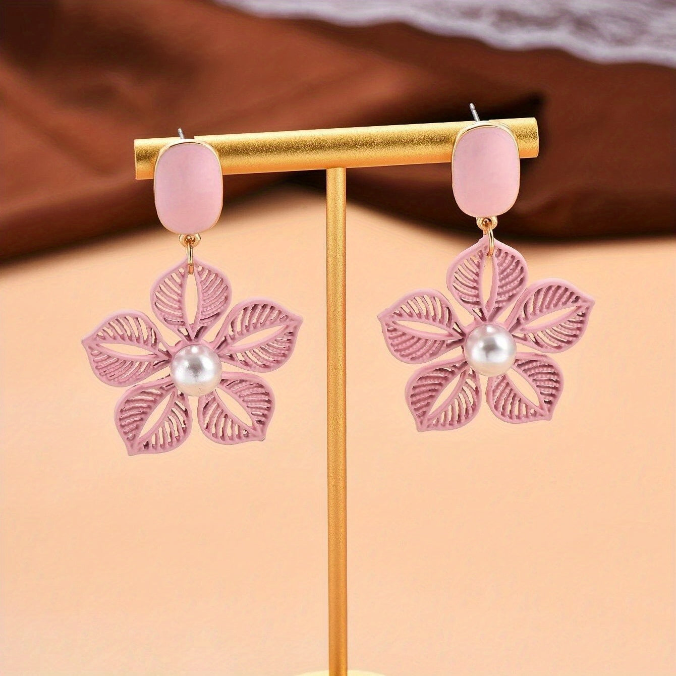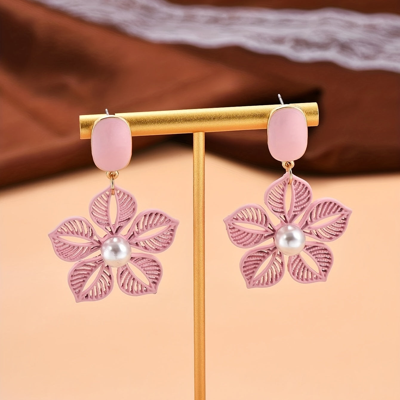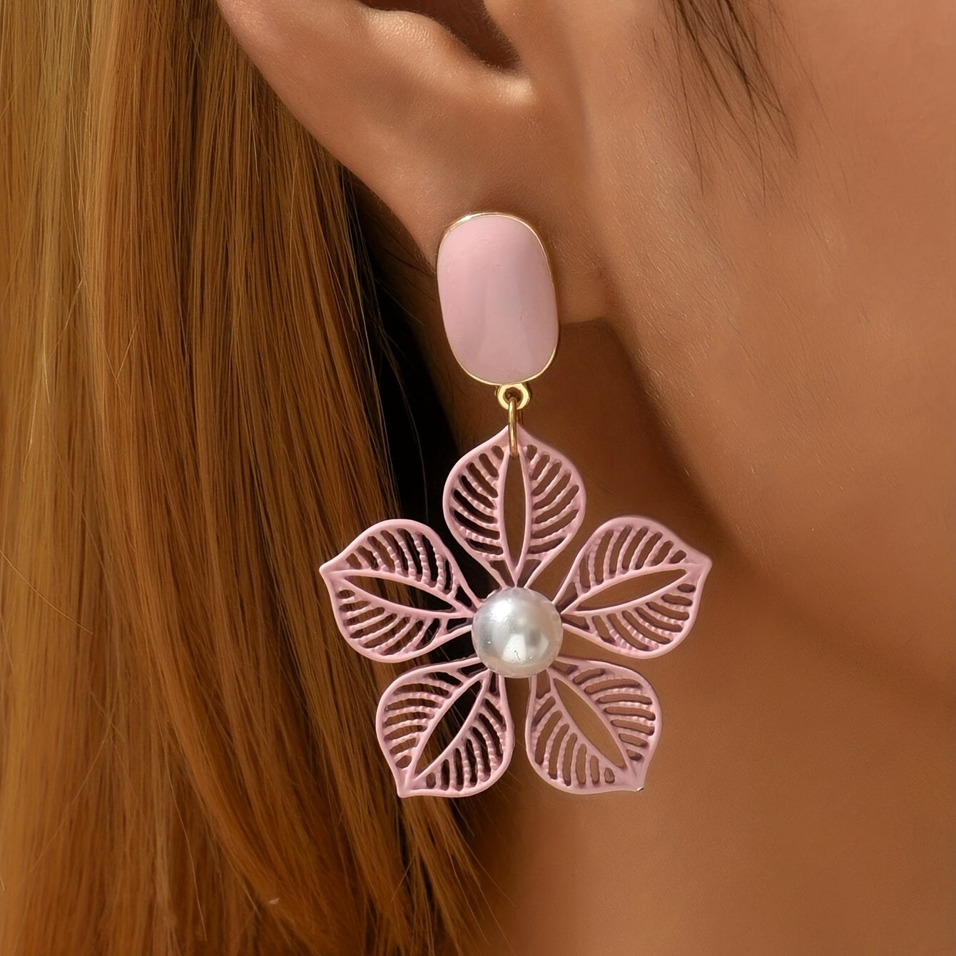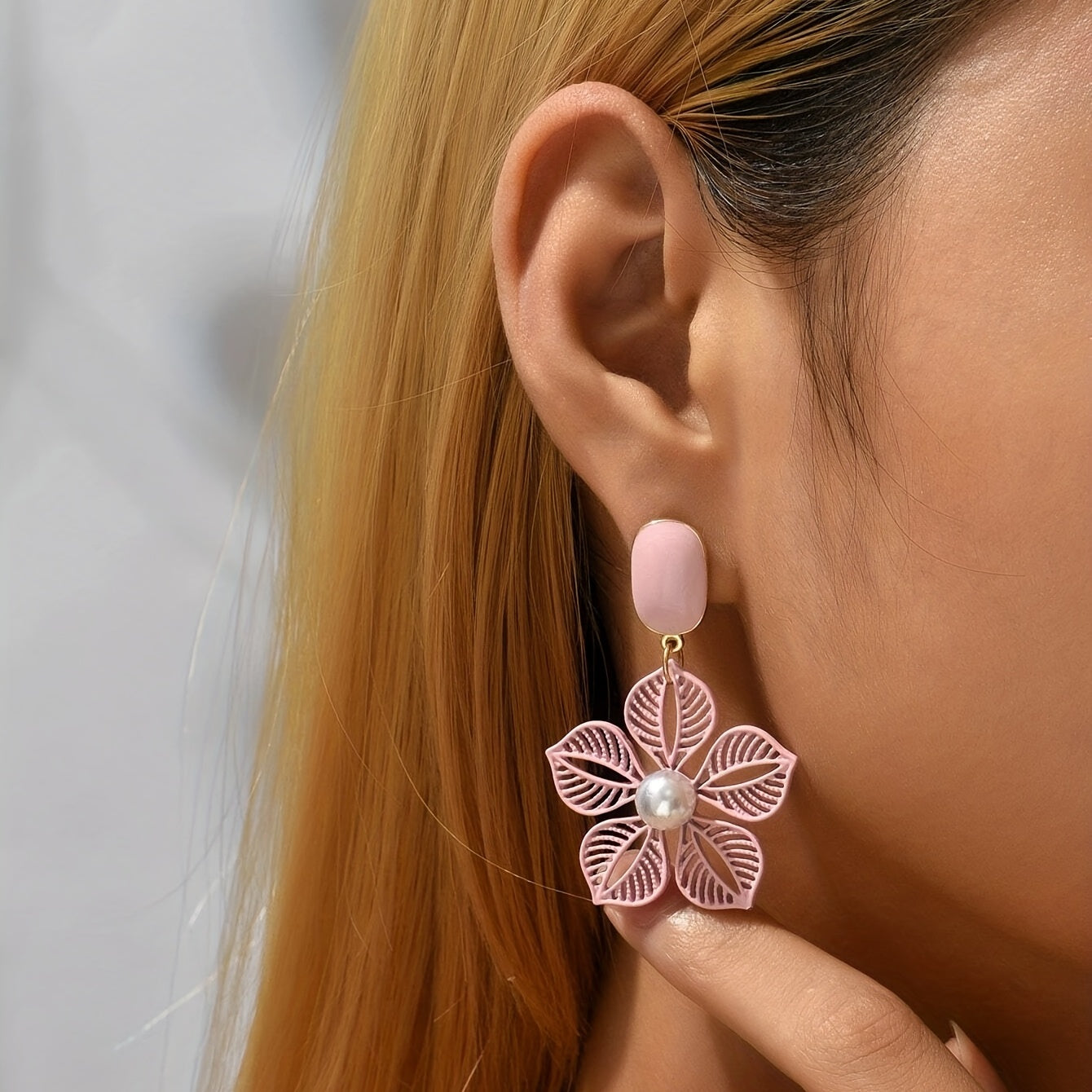 These earrings feature pink flower rice beads for a sexy and stylish look. Made of high-quality alloy, perfect as a gift for females.