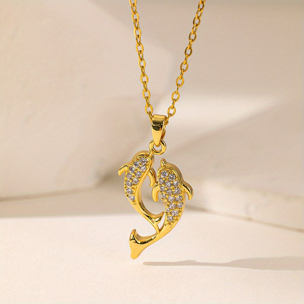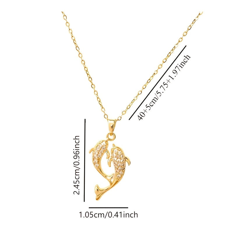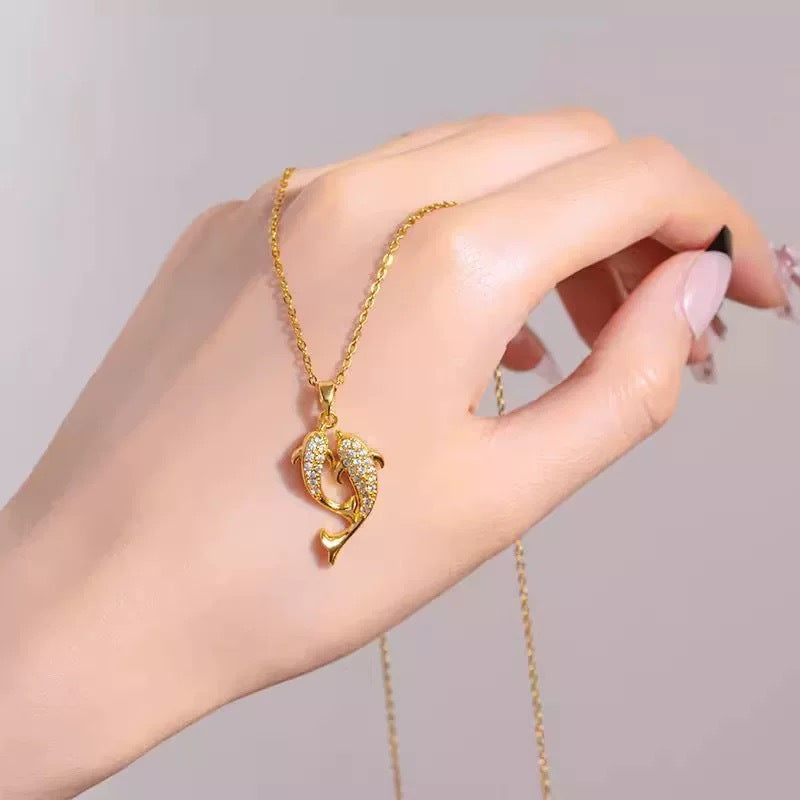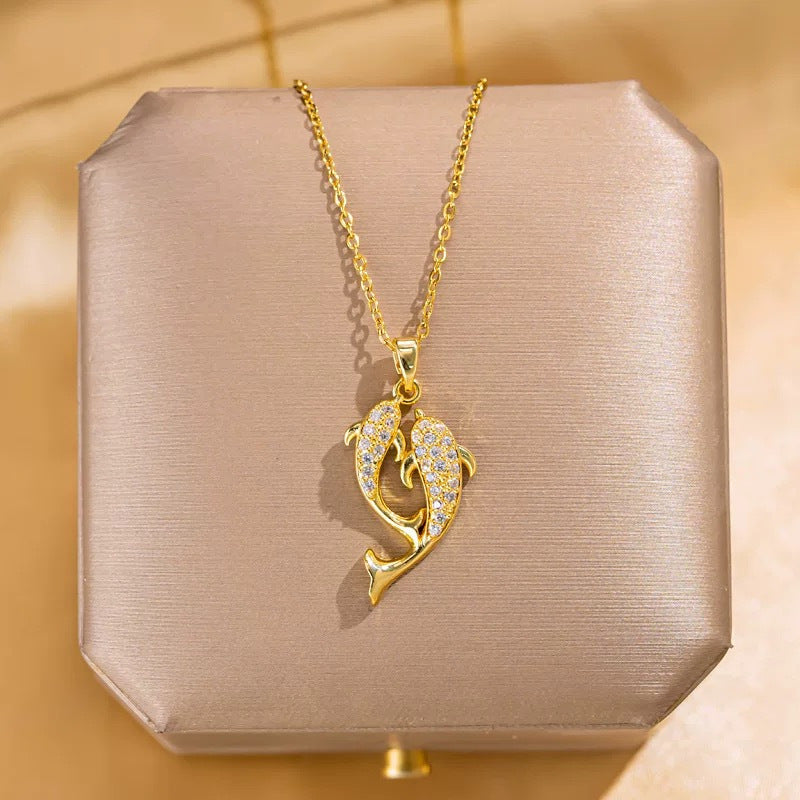 Elegant Pisces pendant necklace designed for daily wear or special occasions. Features a sparkling rhinestone accent and a waterproof tone chain.