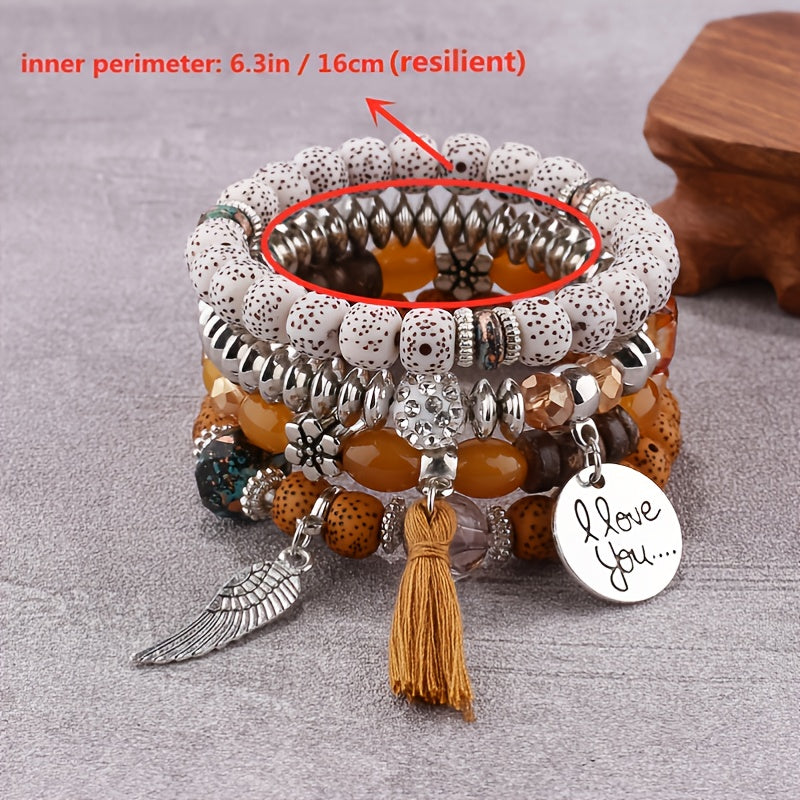 Elevate your accessory game with this stylish bracelet featuring polyamid layered design, fringe beads, and an 'I Love' charm. Perfect for adding a touch of elegance to your outfit.