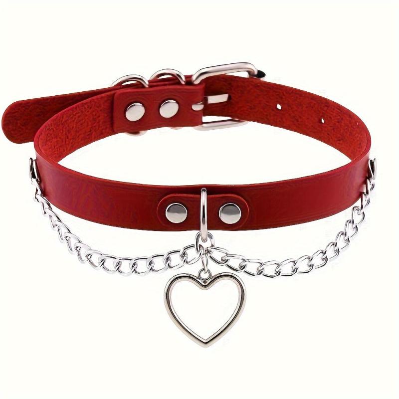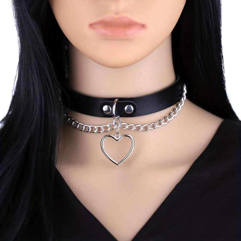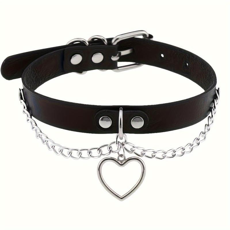 PU Leather Love Pendant Gothic Collar Choker Necklace