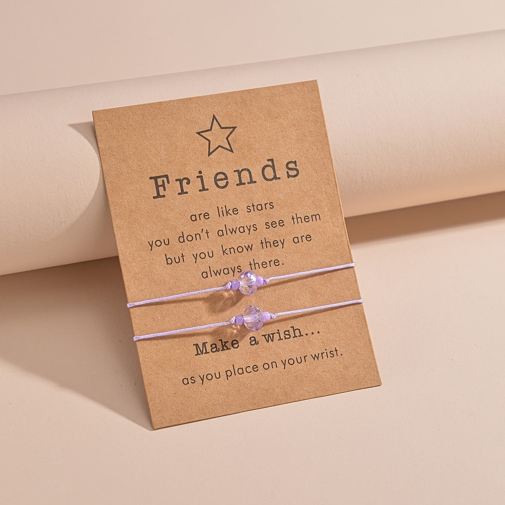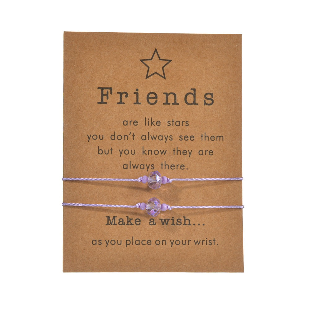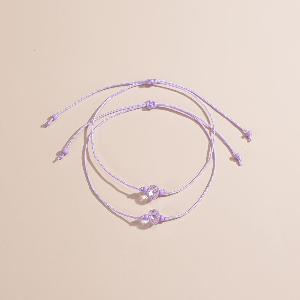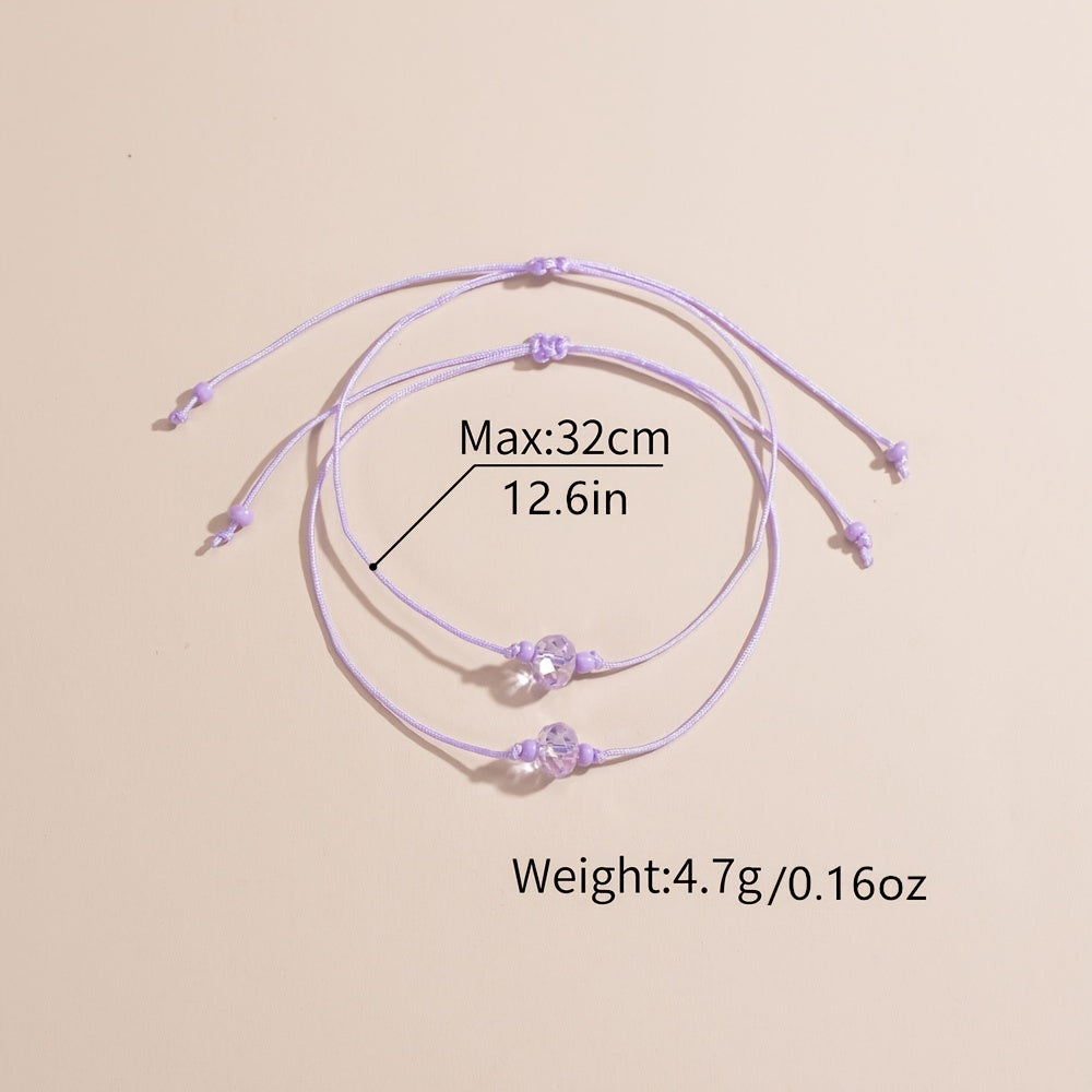 This set of dainty hand jewelry features purple crystal string bracelets, perfect for couples. Give the gift of good luck with this beautiful birthday present.