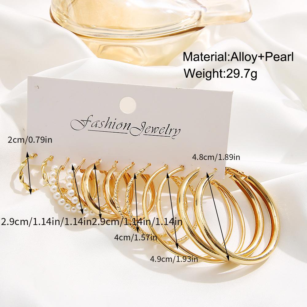 Elevate your style with this 6 piece set of metal square and geometric earrings featuring a retro pearl design.