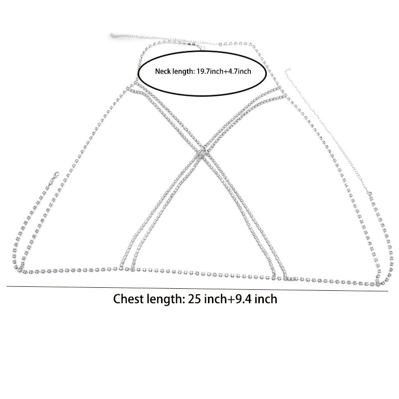 Add a touch of glamour to your outfit with this stunning rhinestone cross chest chain body jewelry. Perfect for special occasions or to elevate your everyday look.