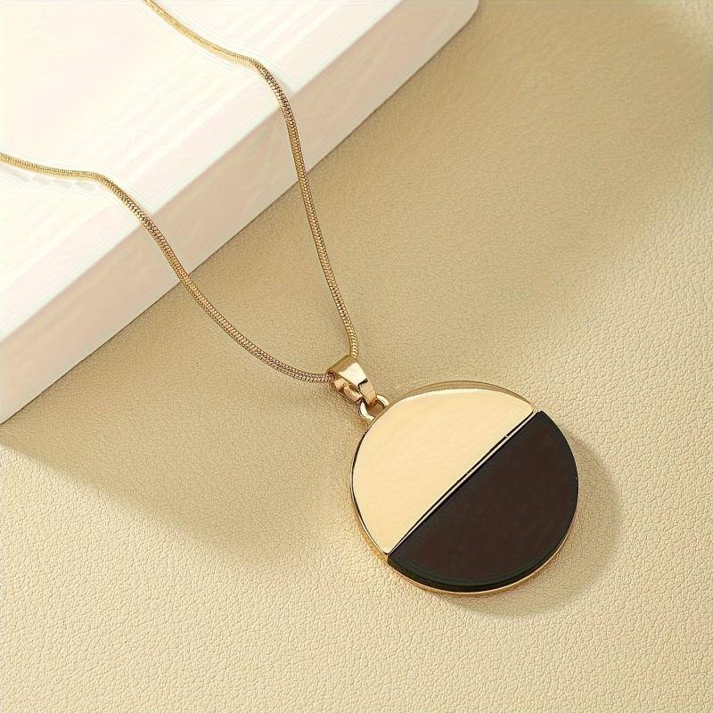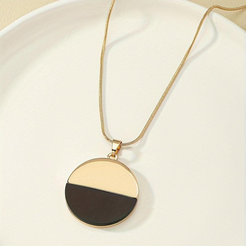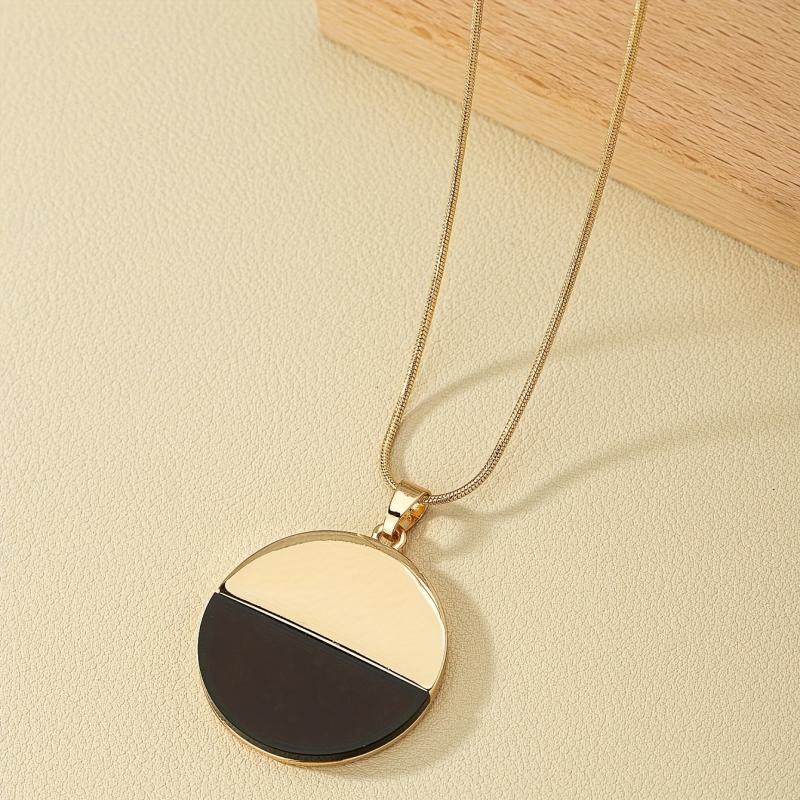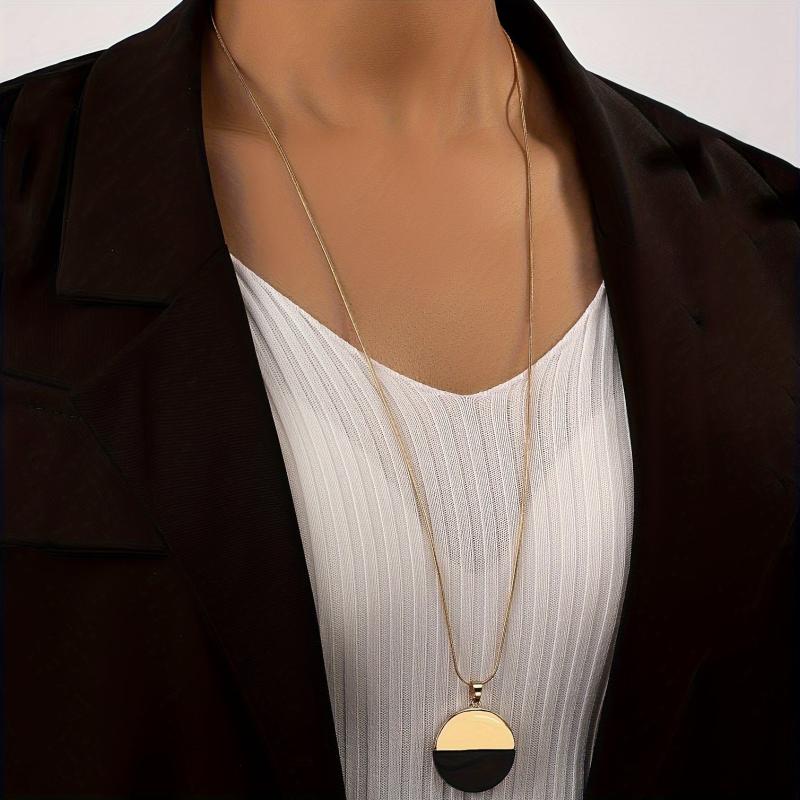 Elegant and stylish long necklace featuring a round spliced block pendant design.