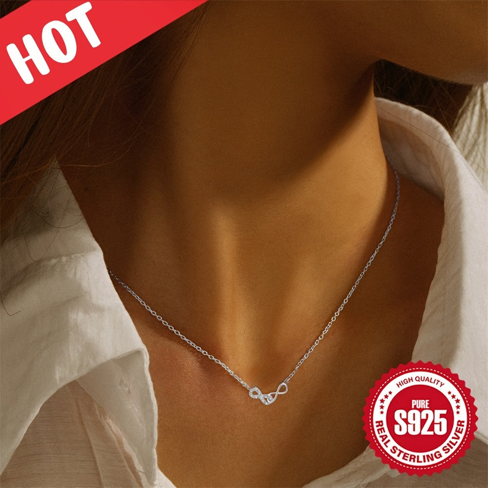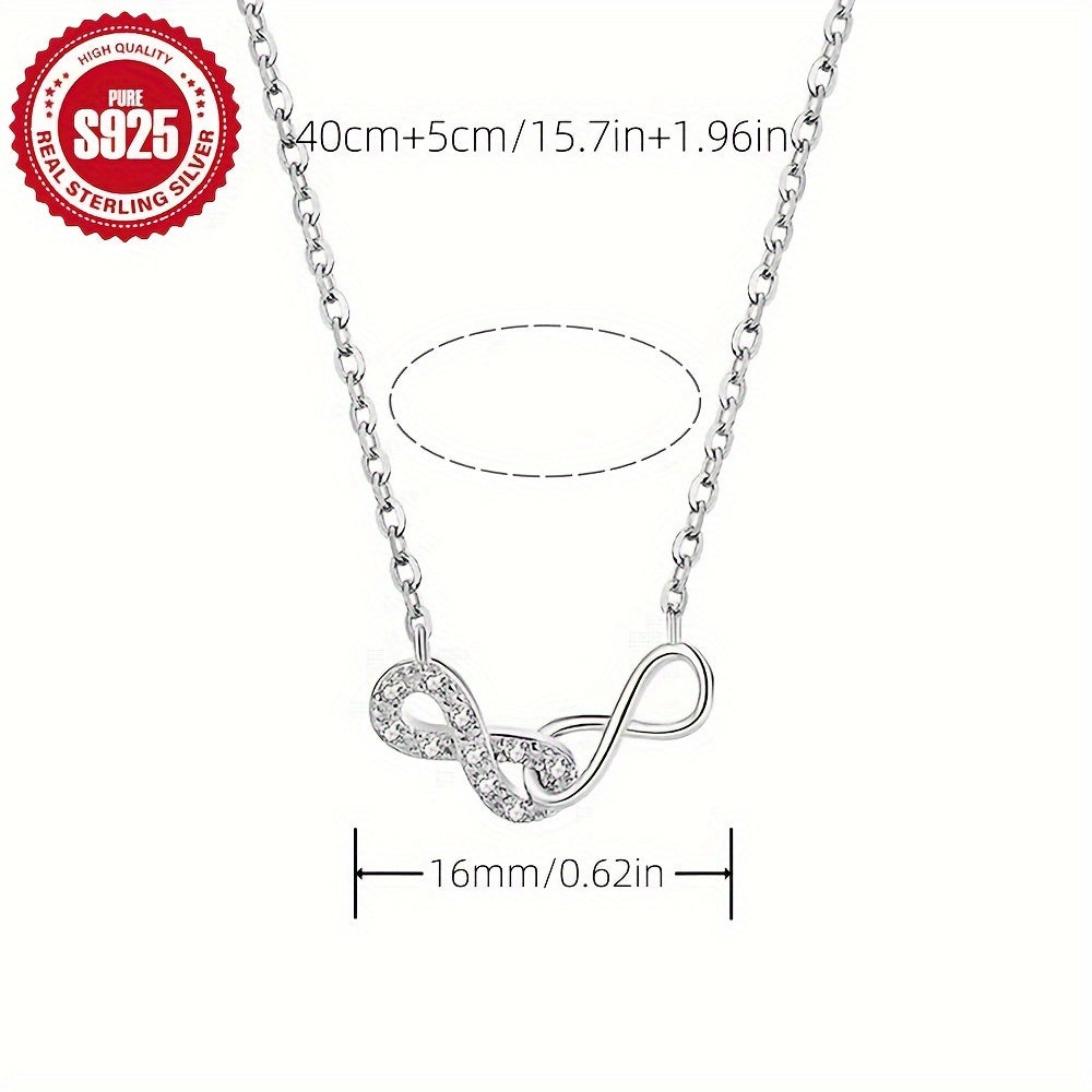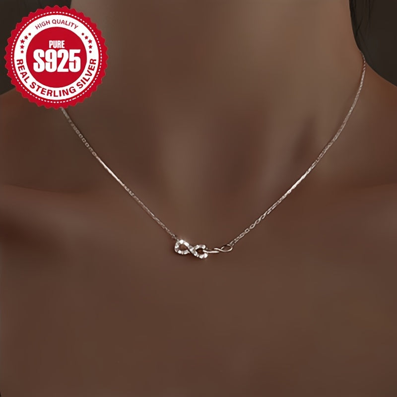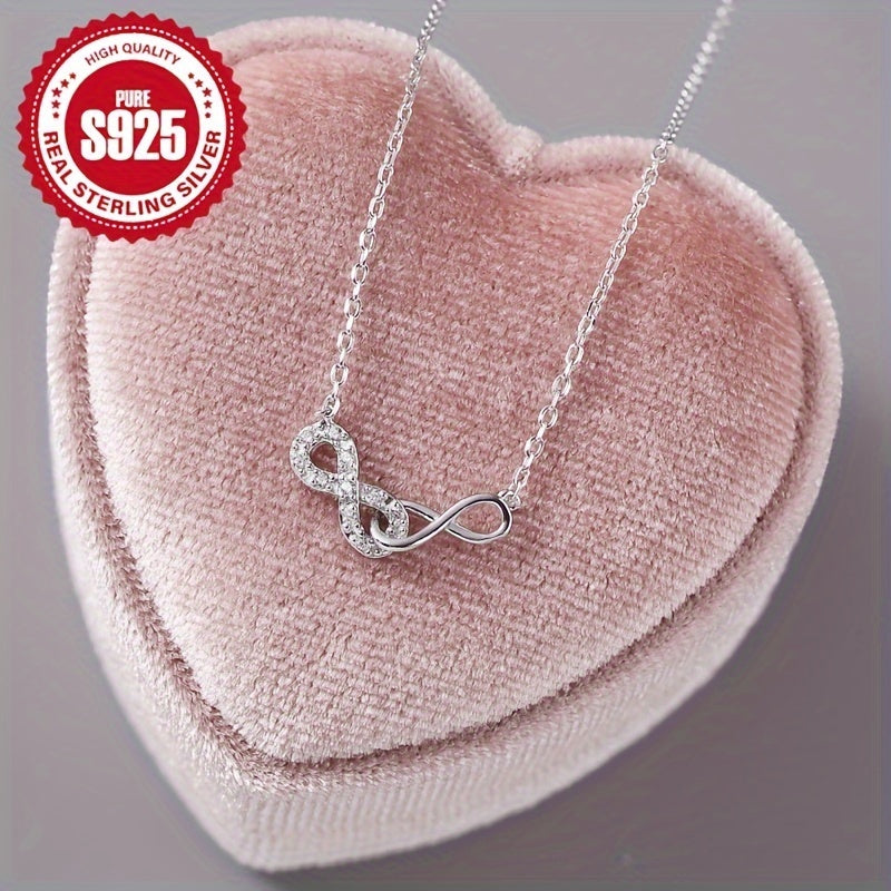 Diese Frauenkette besteht aus hypoallergenem S925 -Silber und verfügt über ein minimalistisches Design. Es hat einen sicheren 8-förmigen Verschluss und ist mit synthetischer Zirkonia geschmückt. Mit einem Gewicht von nur 1,5 g ist diese Halskette perfekt für den täglichen Abnutzen.