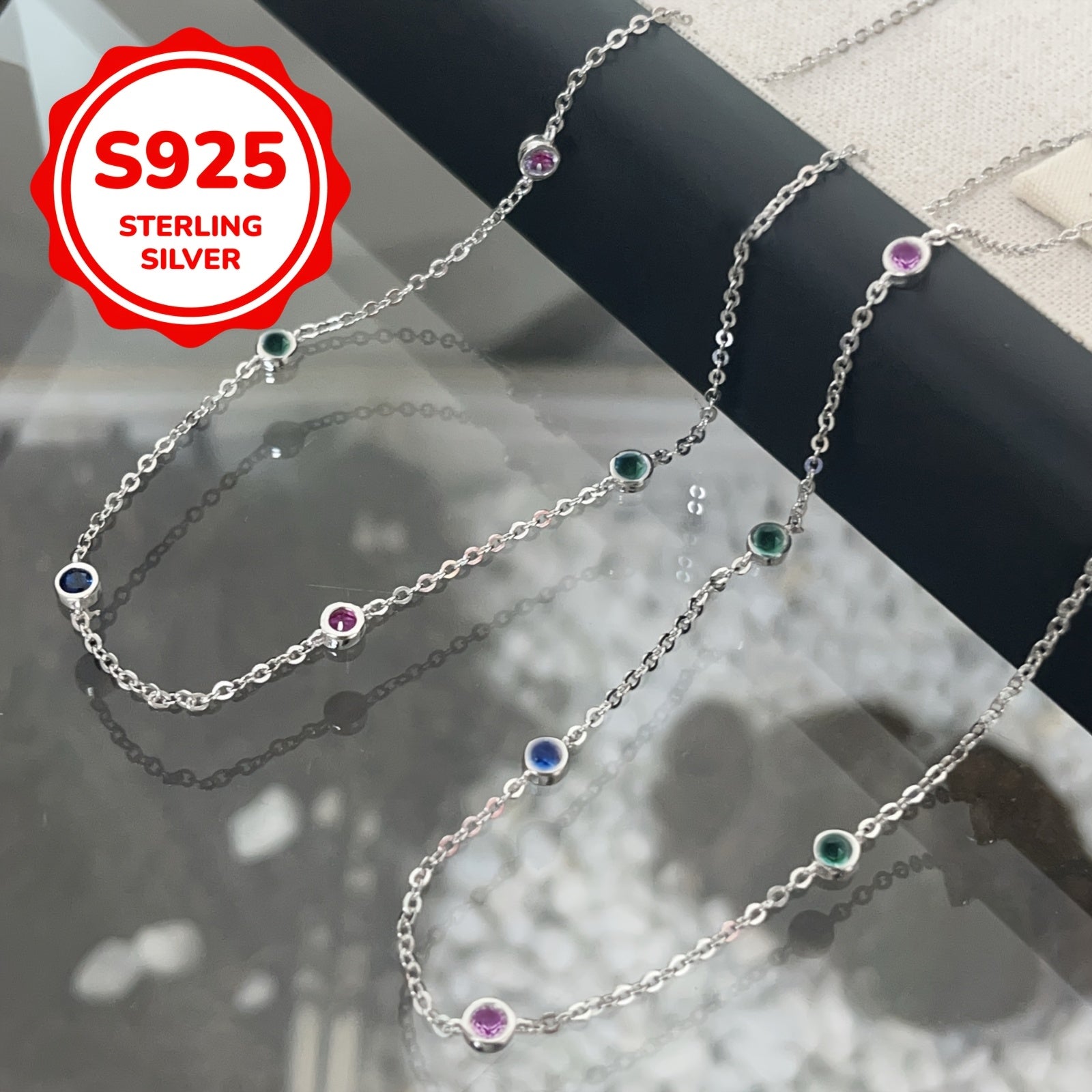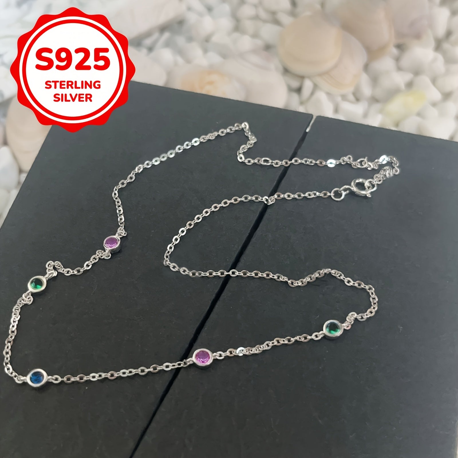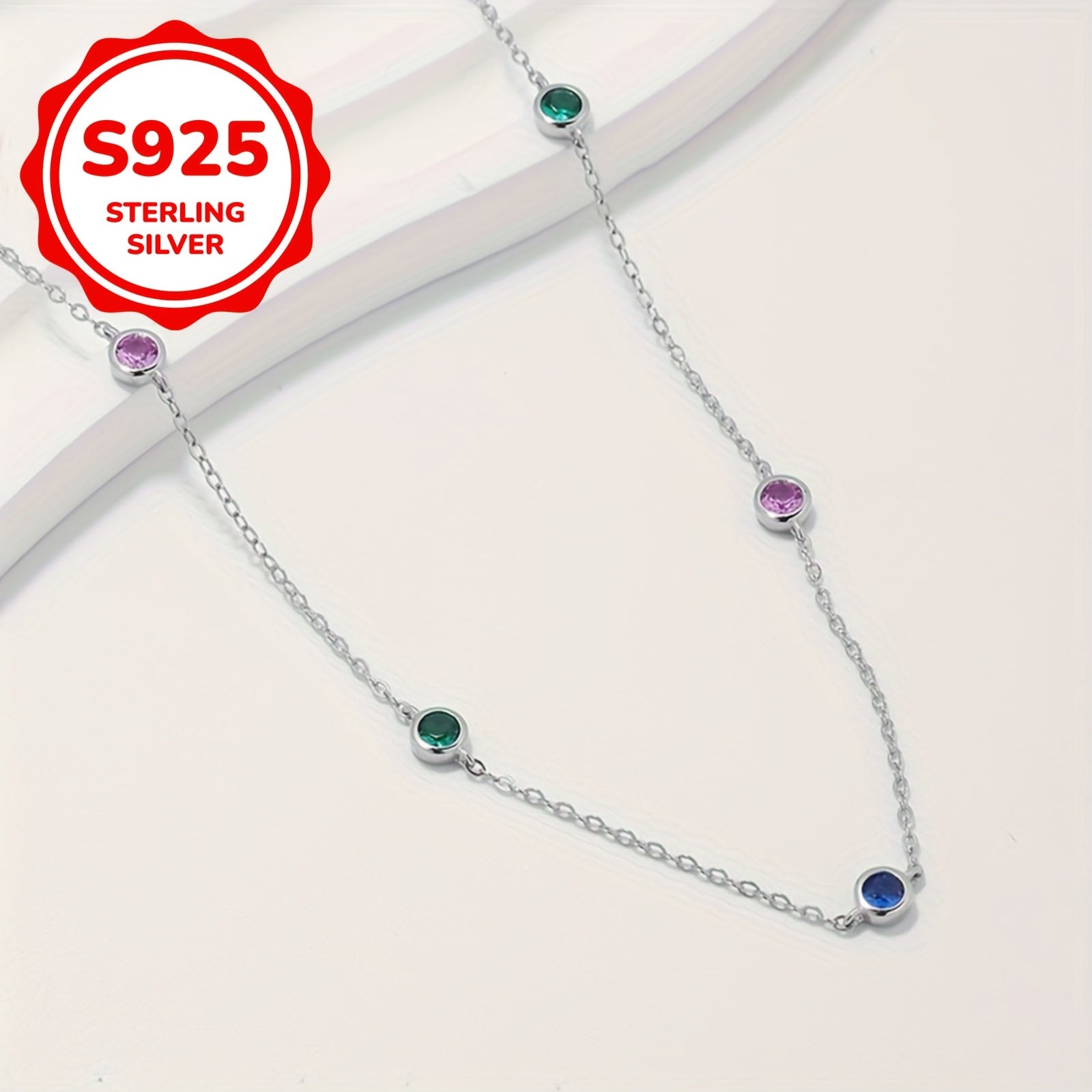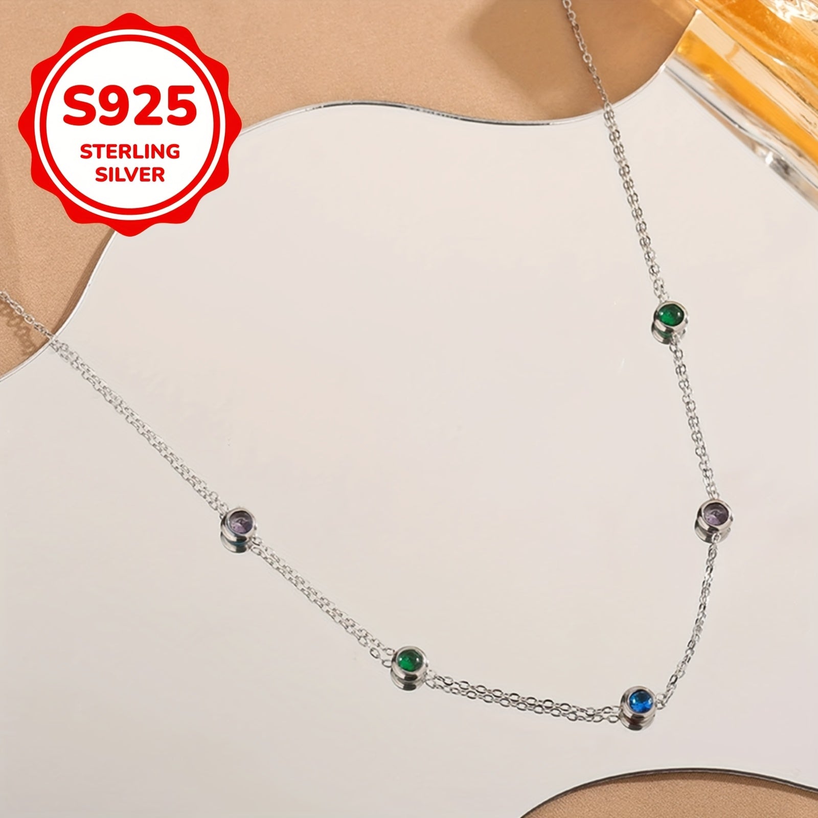 S925 Silver Zirconia Chain Necklace - Mother&
