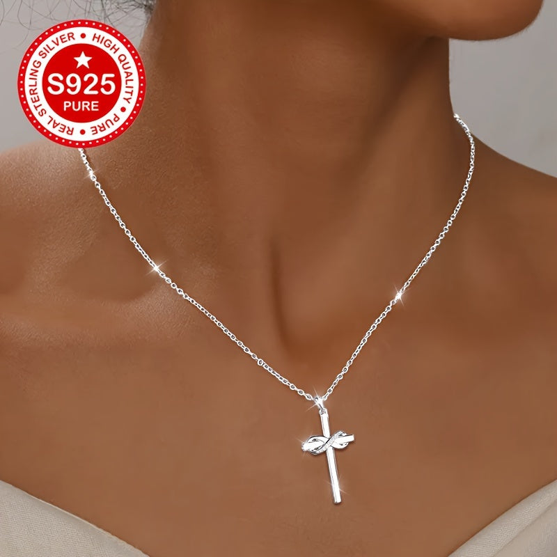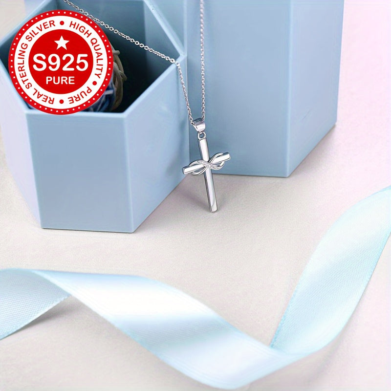 Elegante 8-Charakter-Kreuz-Anhängerkette aus S925-Silber mit synthetischer Zirkonia. Vielseitig für jeden Anlass.