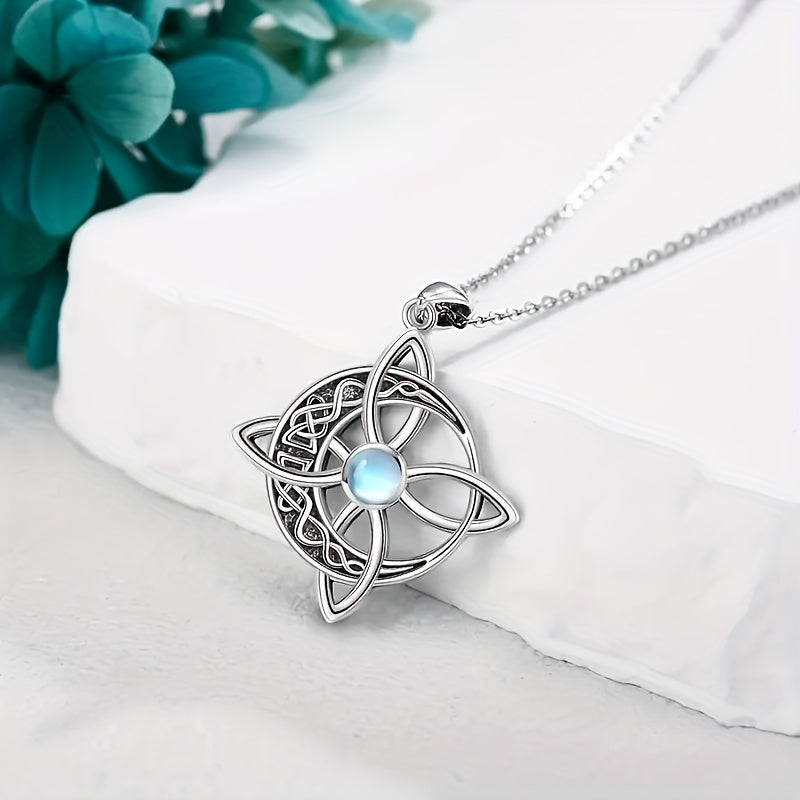 Elegante Anhängerkette aus 4 g S925 Silber mit Vintage Thai Silver Moonstone Celtic Knot und Infinity Symbol Design. Ideale Geschenkauswahl.