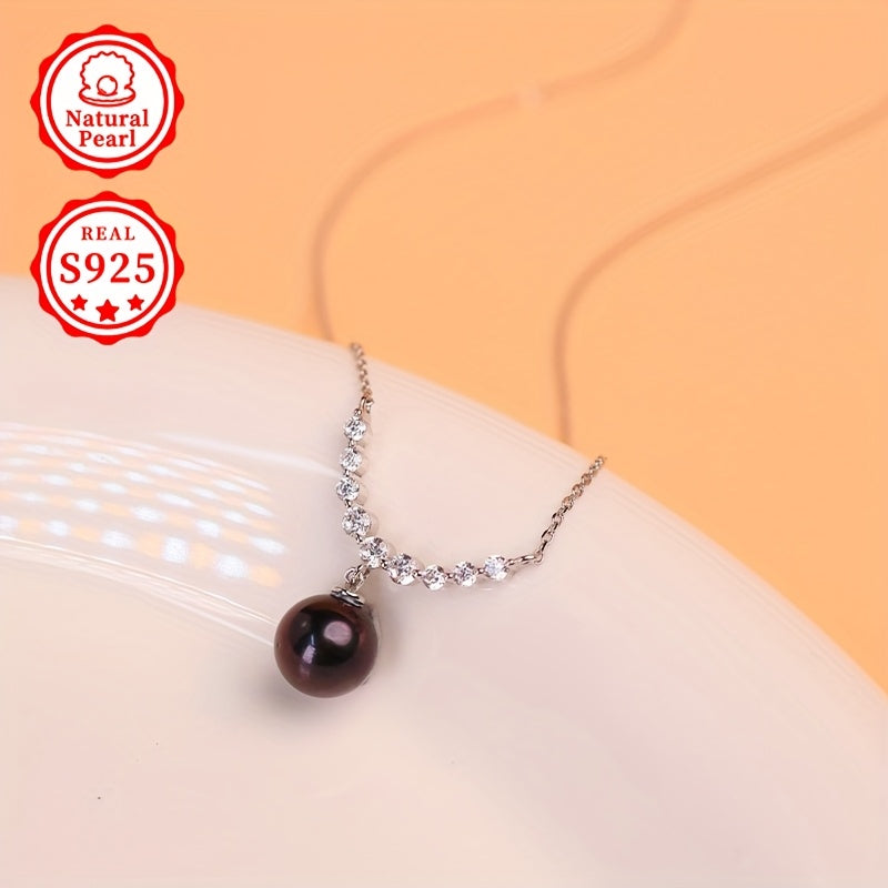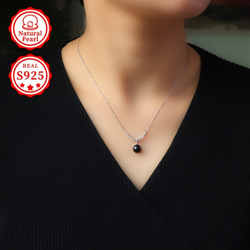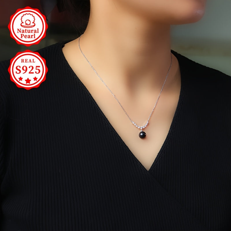 Elegant collarbone chain with a 8-9mm round pearl pendant. Perfect for everyday wear or special occasions. Makes a great gift.