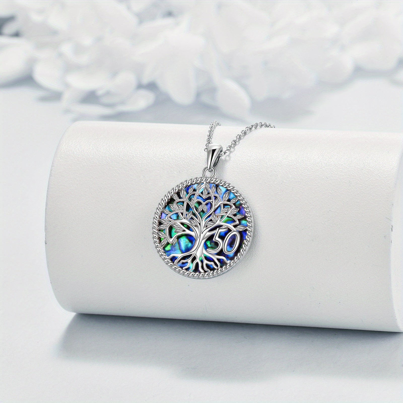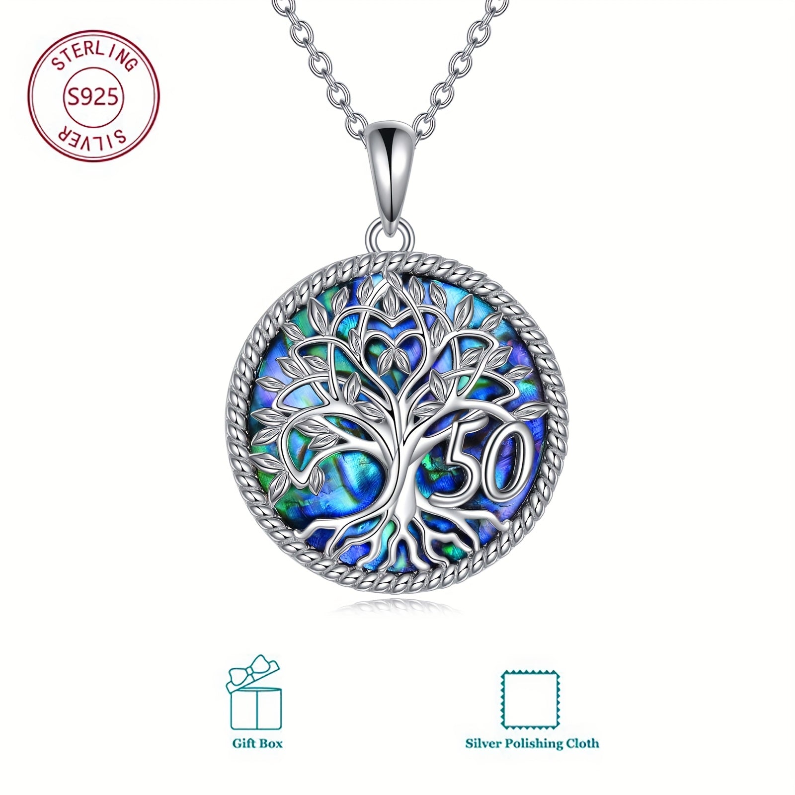 Feiern Sie einen besonderen 50. Geburtstag mit dieser eleganten S925 -Sterling -Silber -Halskette mit einem wunderschönen Baum des Lebens, der von Abalone Shell akzentuiert wird. Ein perfektes Geschenk für Frauen.