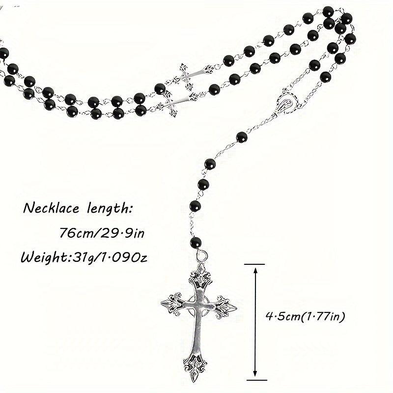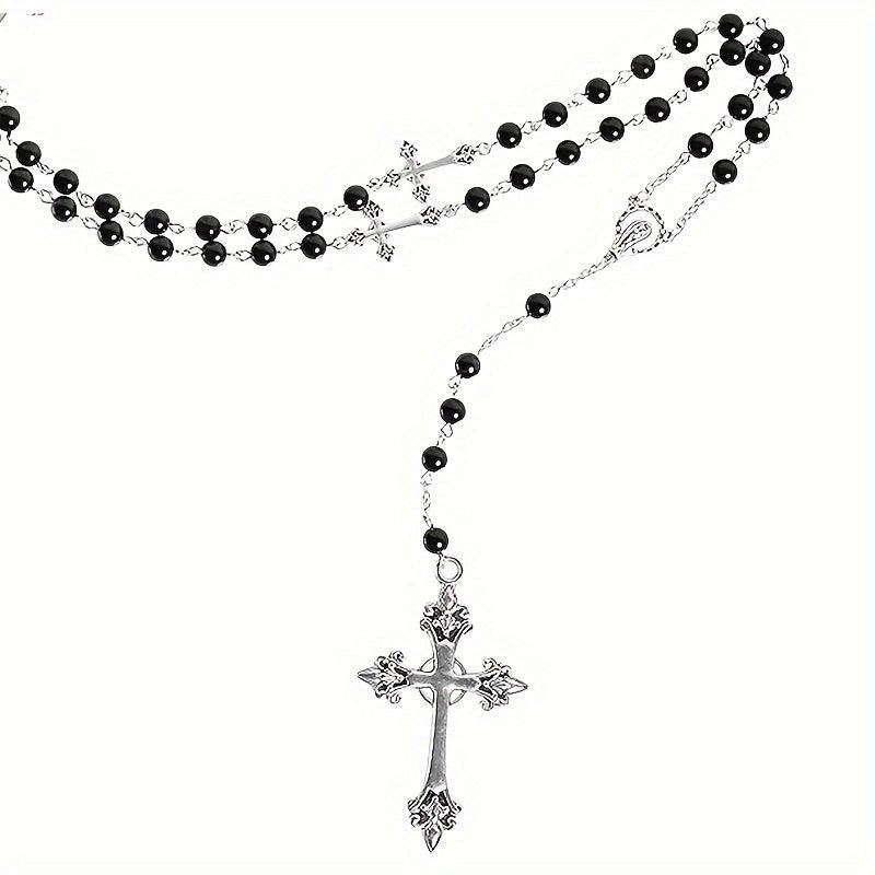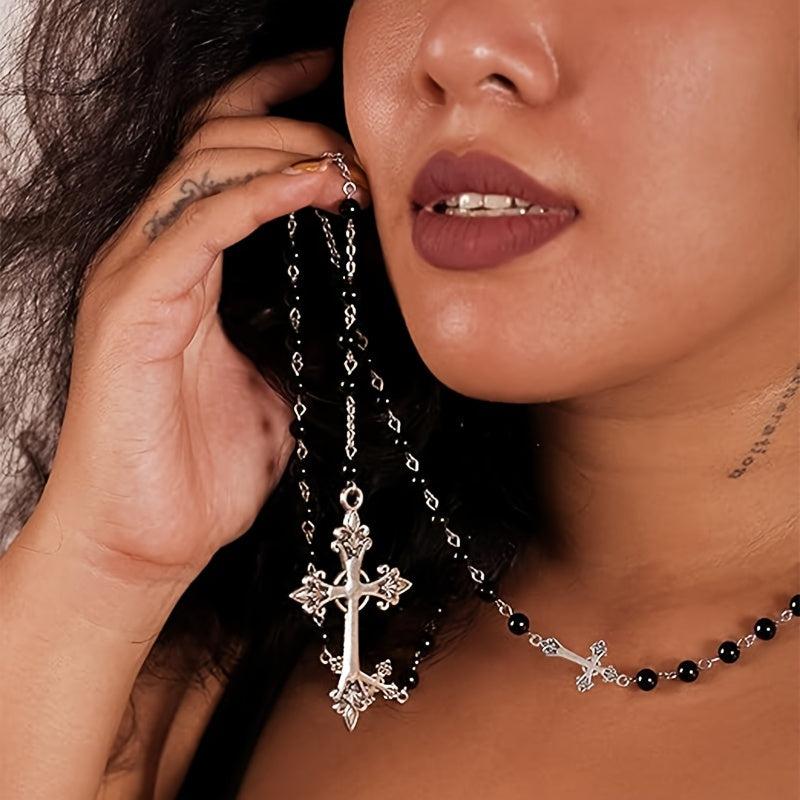 Elevate your style with this Gothic Cross Long Necklace featuring an intricate cross pendant on a bead chain. Perfect for adding a touch of punk flair to your outfit. Ideal for Halloween and Christmas gifts.