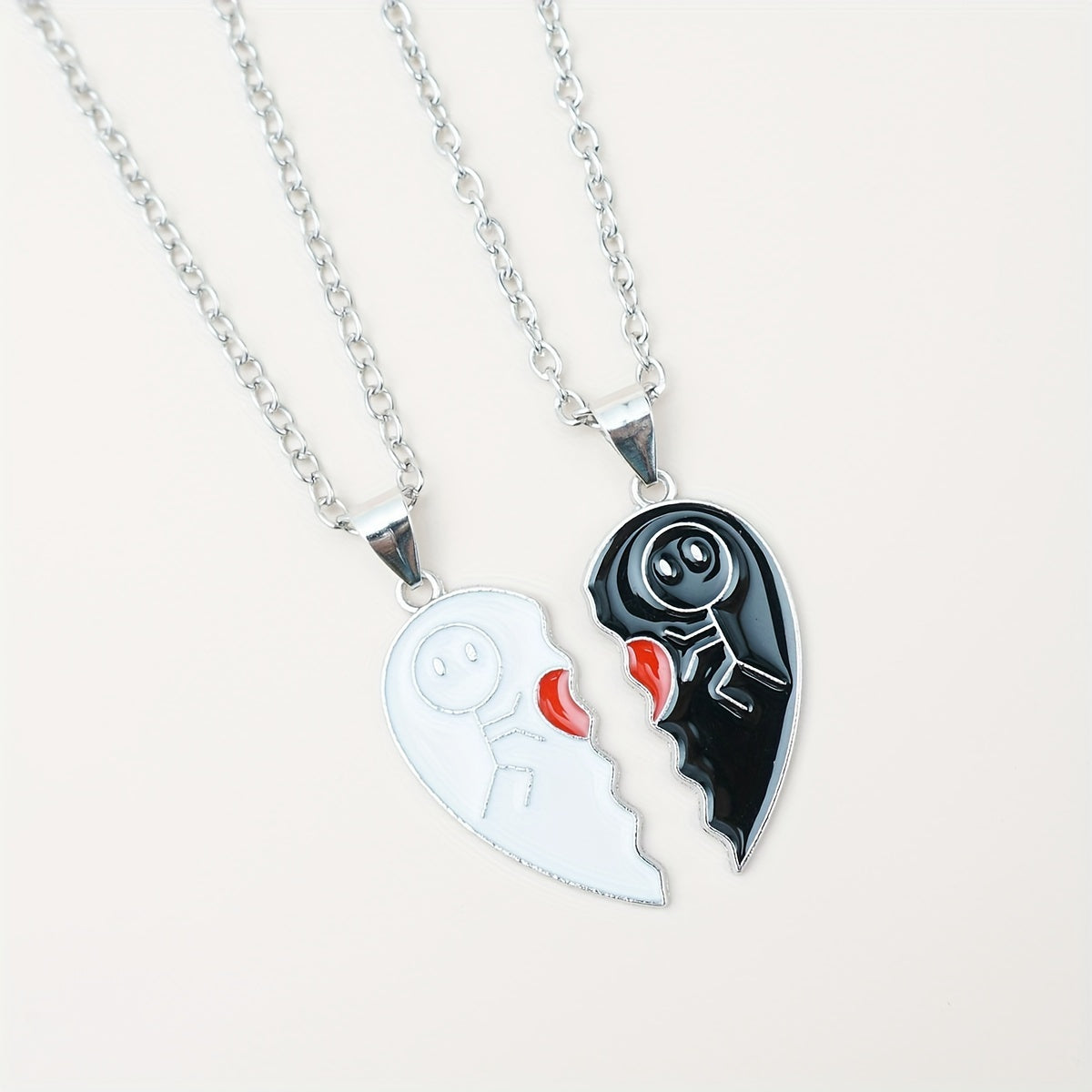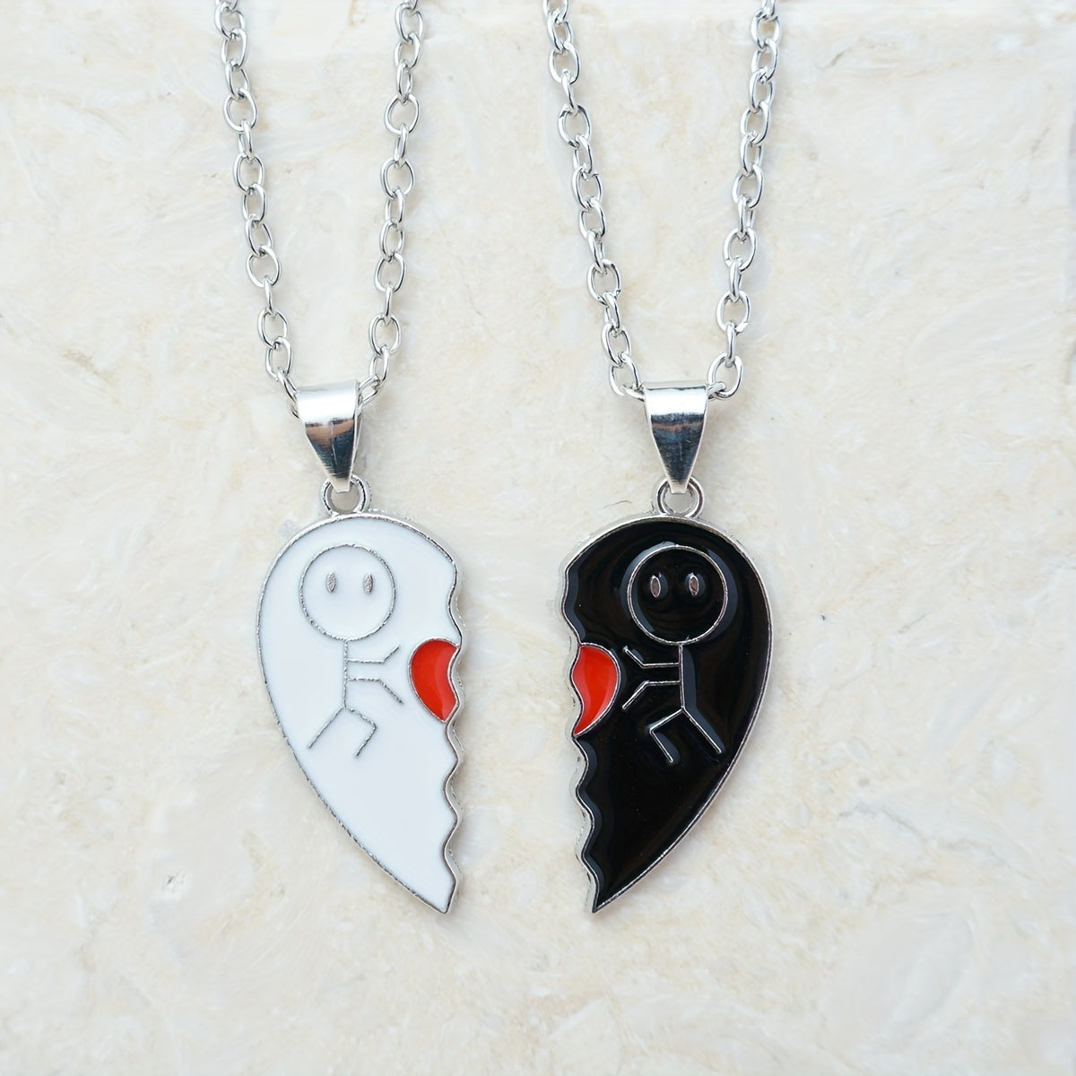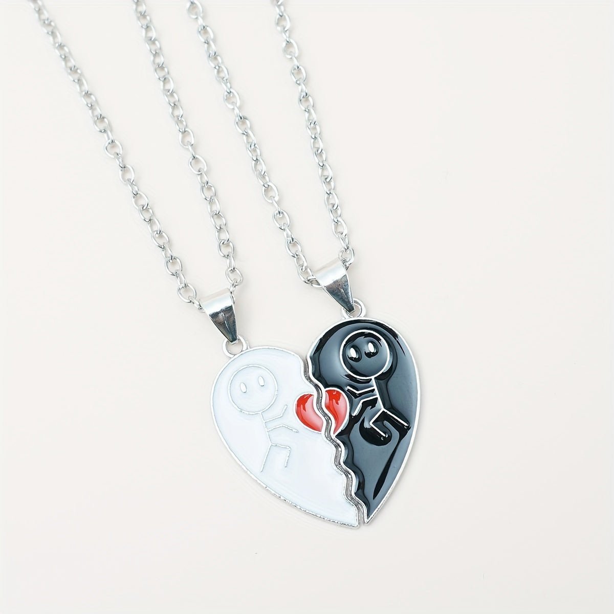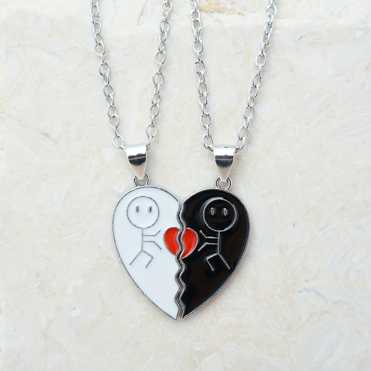 This set includes two heart-shaped splicing pendant necklaces, perfect for friends to wear as a symbol of their friendship. Made of high-quality zinc alloy with no plating, these necklaces are durable and stylish. Give them as a gift for Christmas or any season to show your appreciation for a special friend.