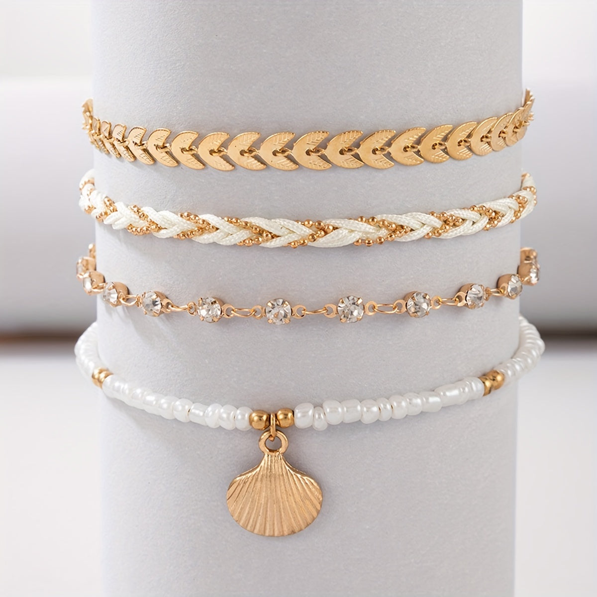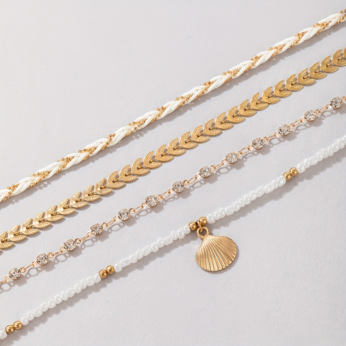 Shell Shape Pendant Chain Anklet Set Ankle Bracelet For Women & Girls