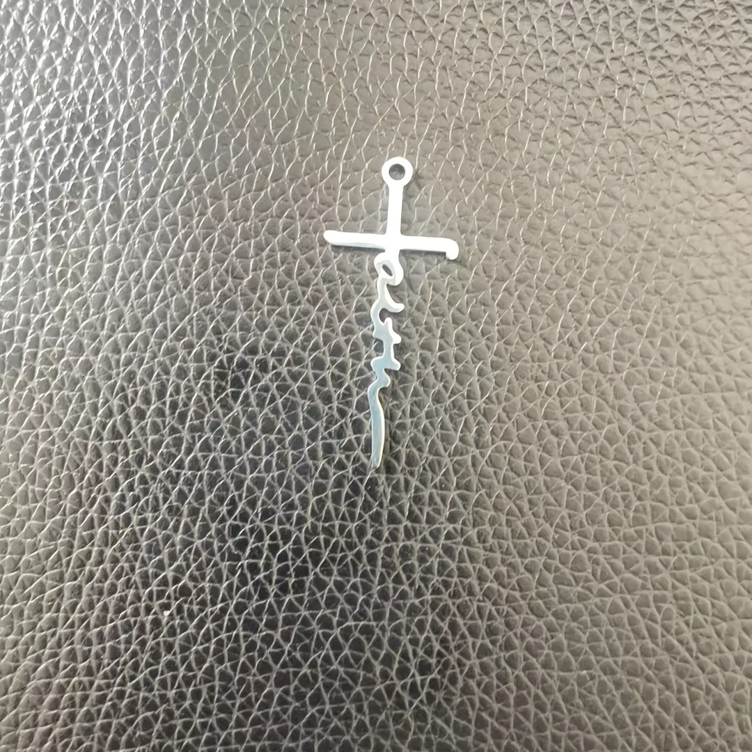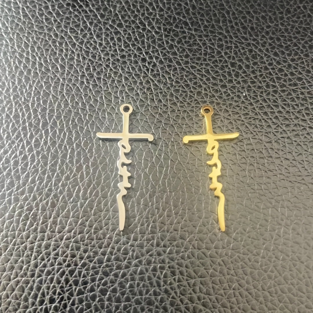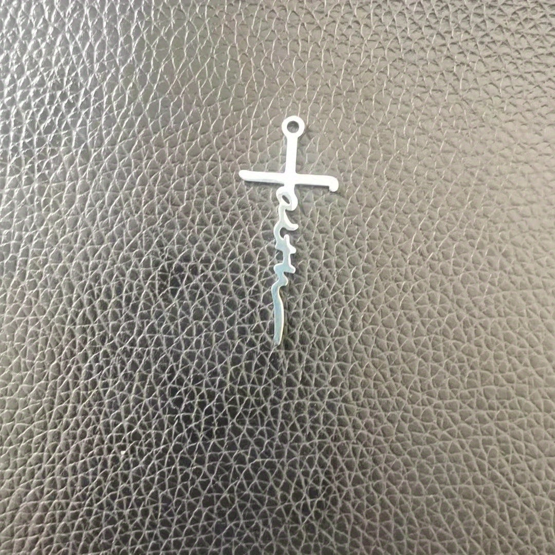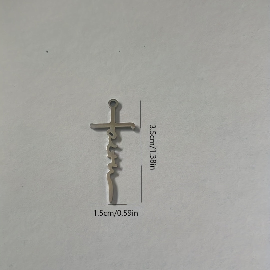 This stainless steel pendant is shaped like the word 'Faith' in a cross design, making it perfect for prayer and DIY jewelry projects. It is a meaningful gift for loved ones.