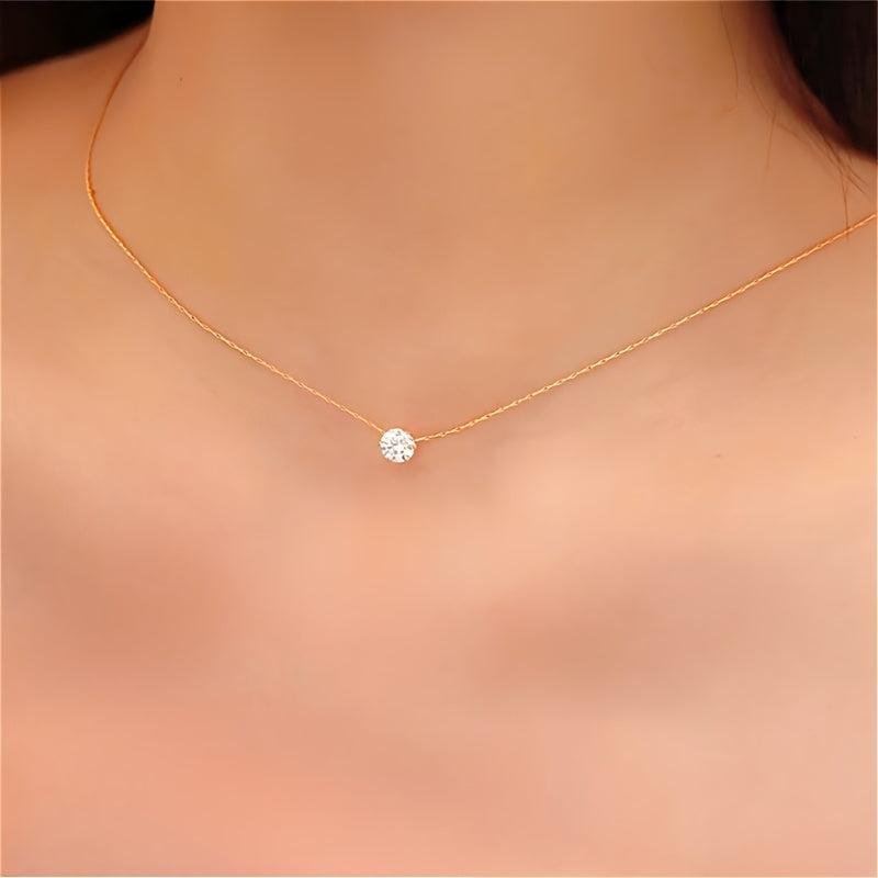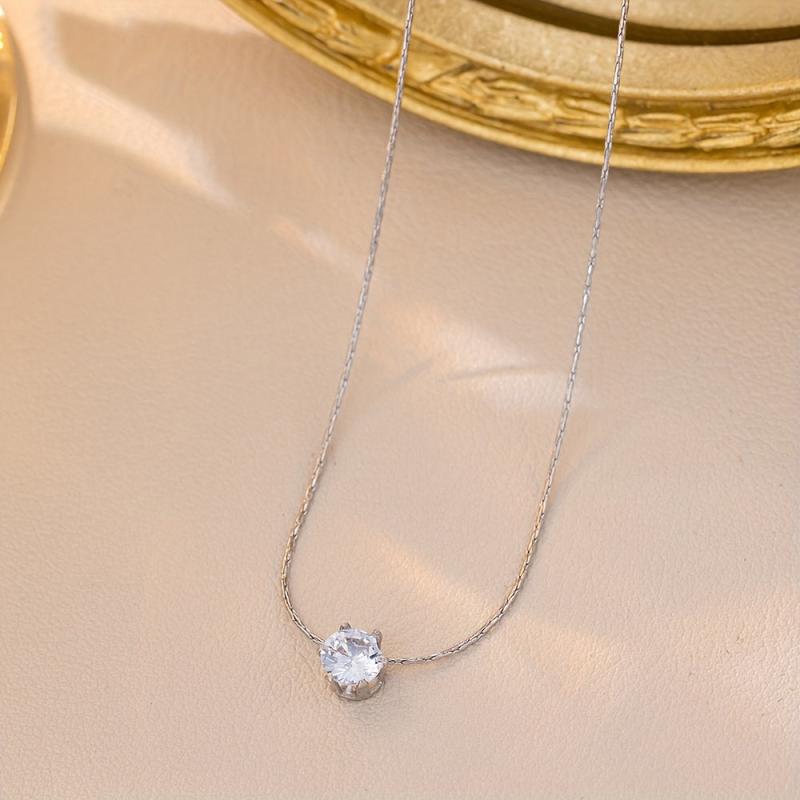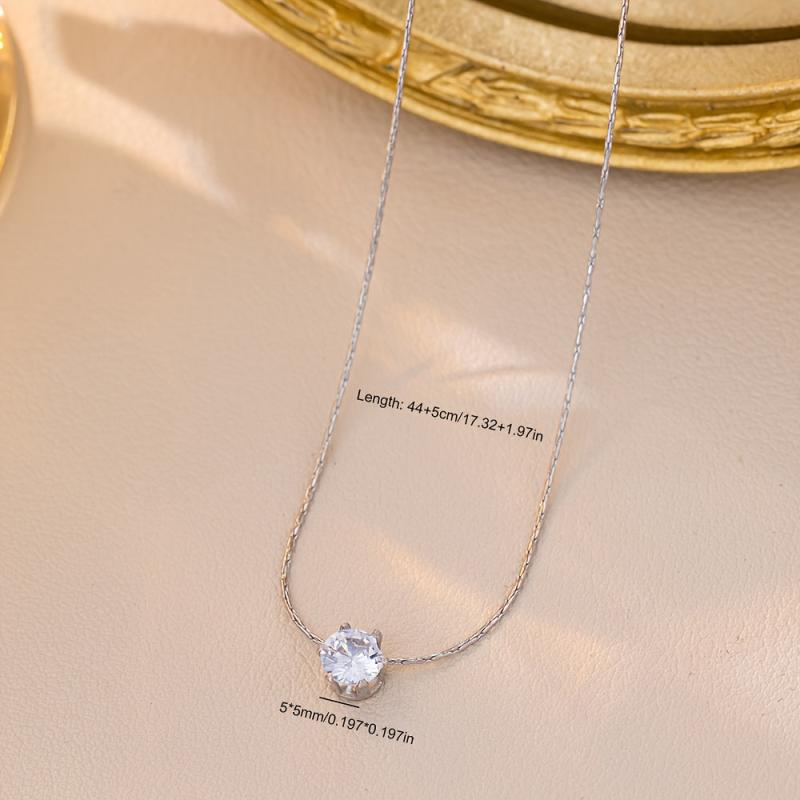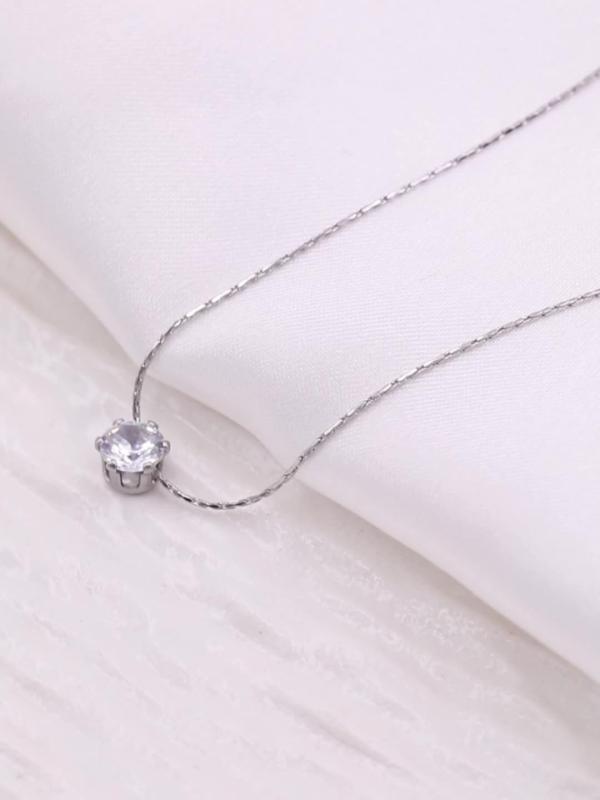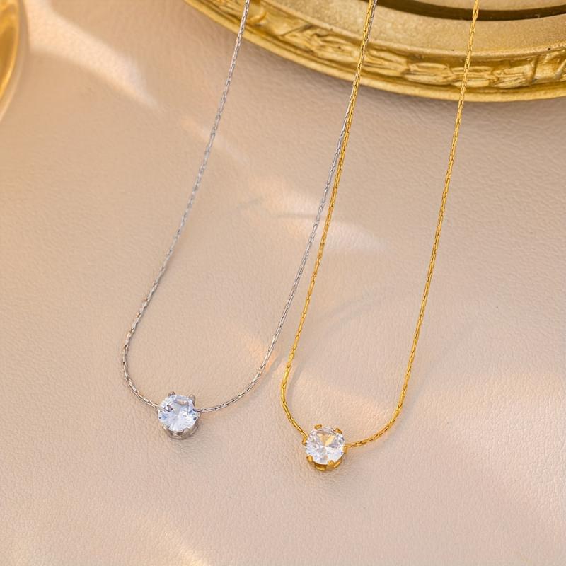 Elegant and versatile stainless steel necklace with six prong round rhinestone. Perfect for weddings and casual attire year-round.