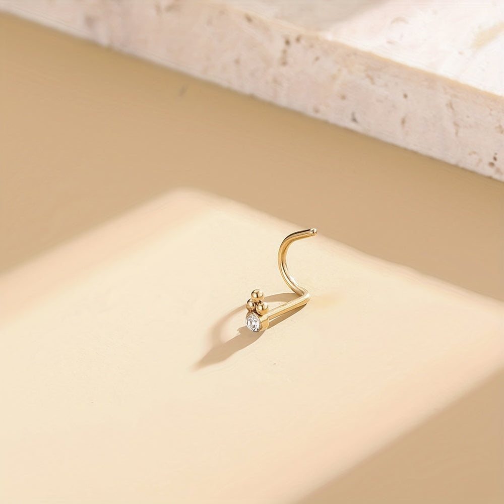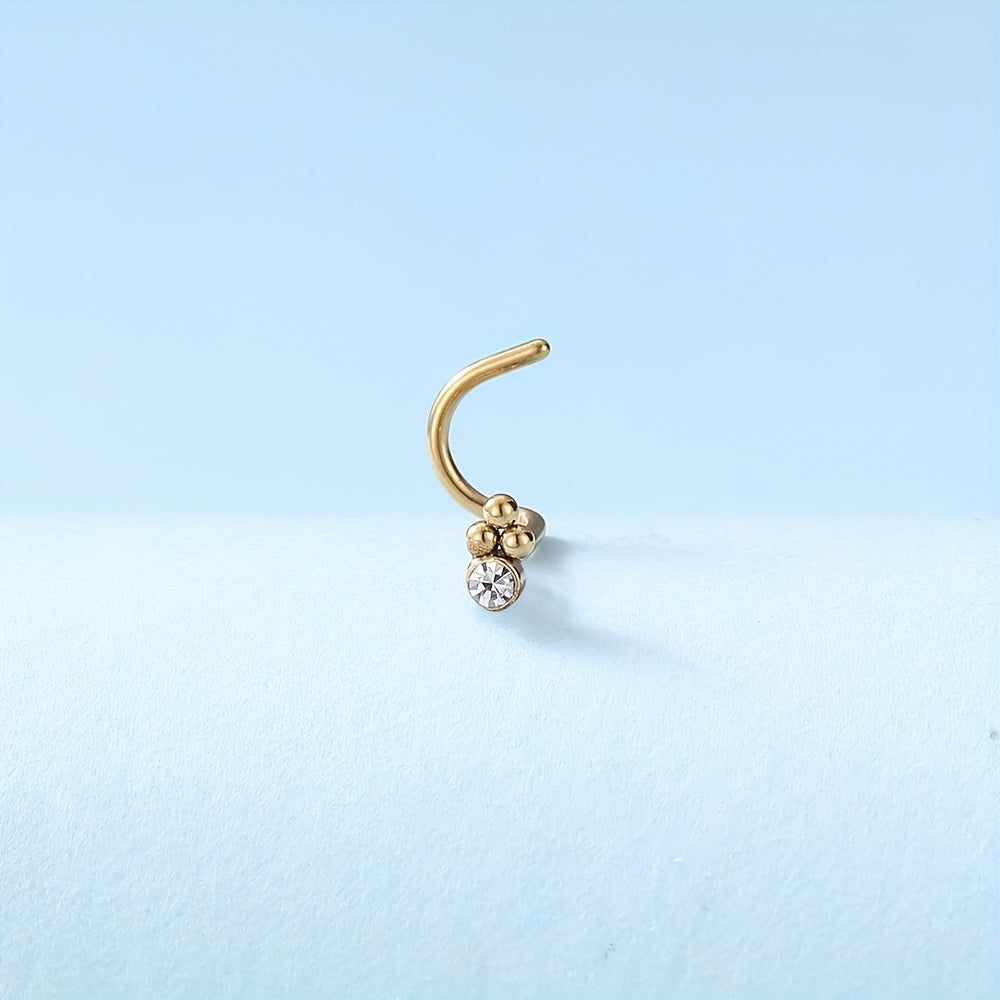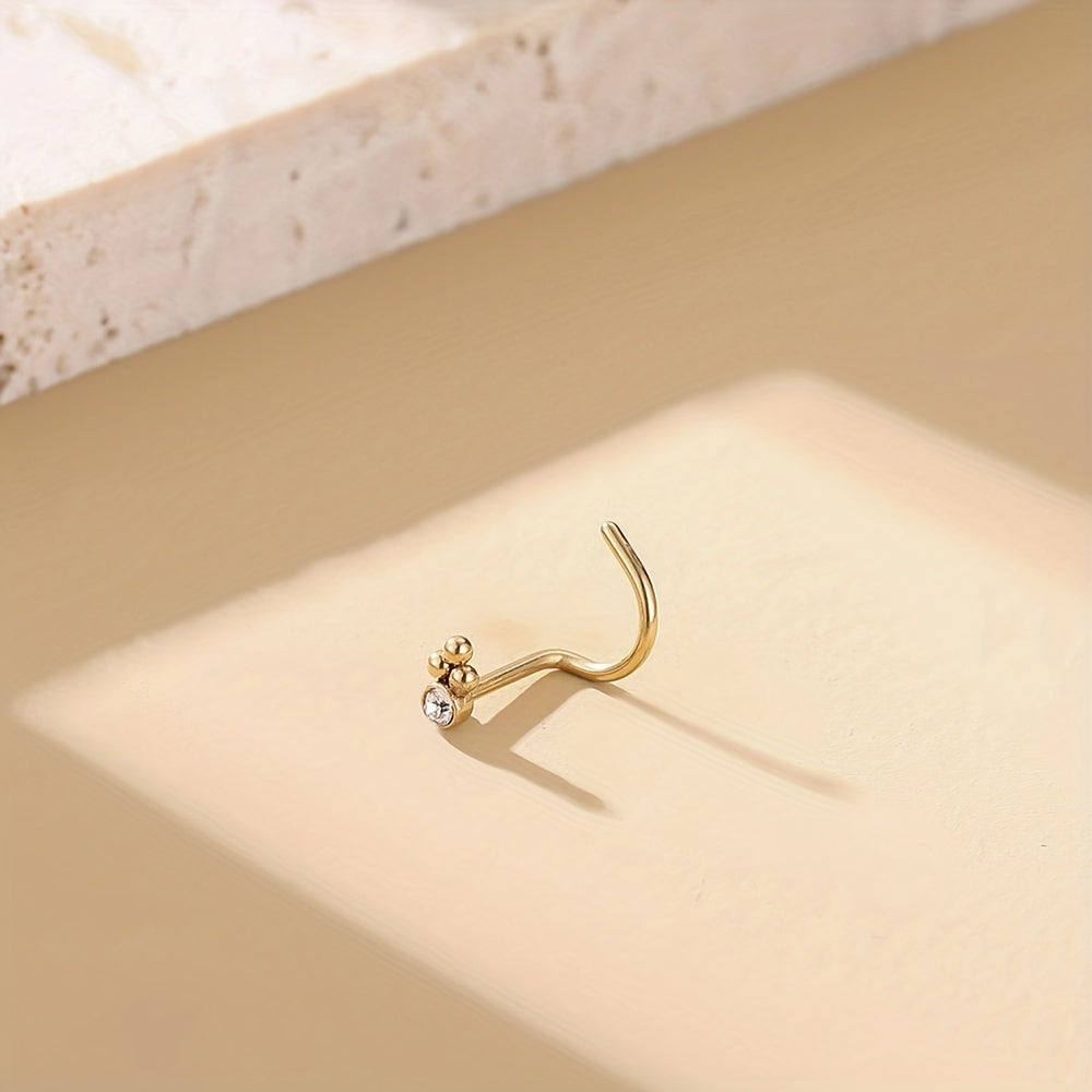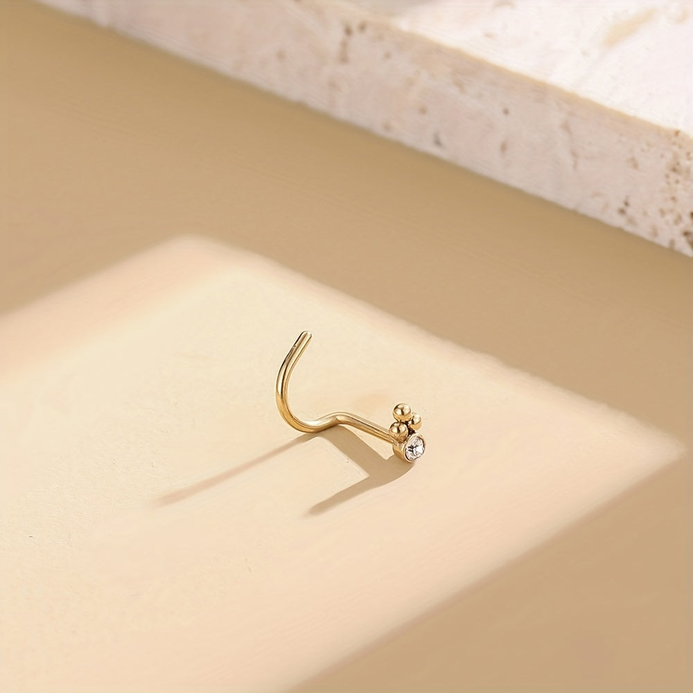 Enhance your nose with this stylish stainless steel nose ring featuring inlaid zircon stone. The S shape design adds a unique touch to your nose jewelry collection.