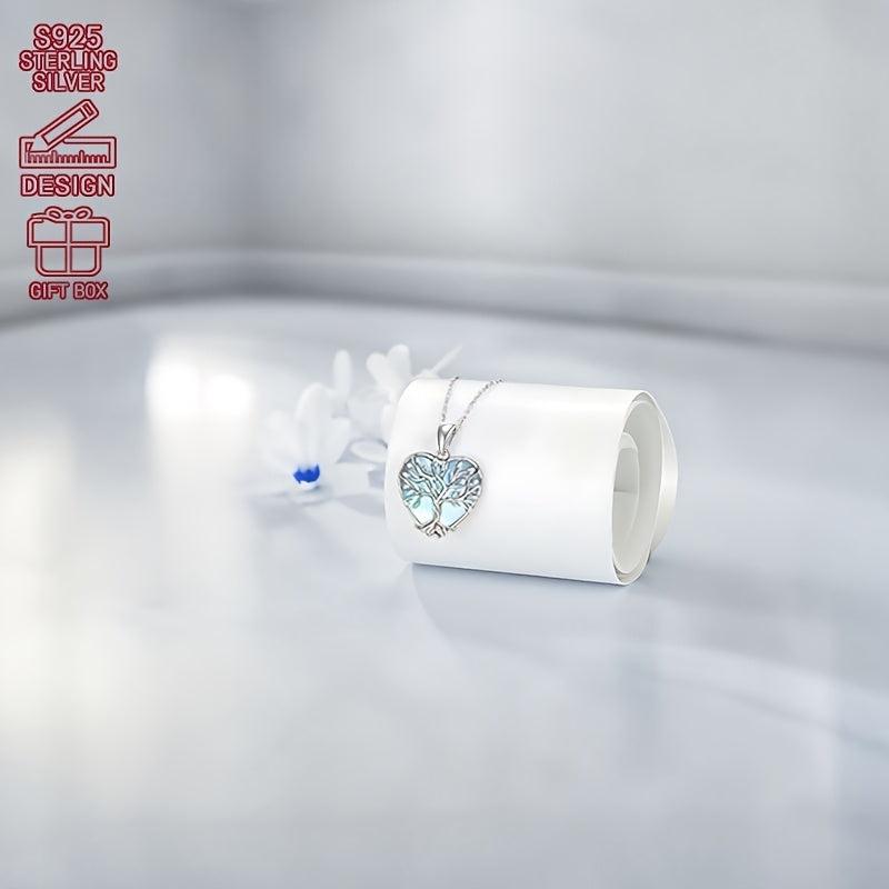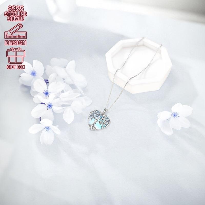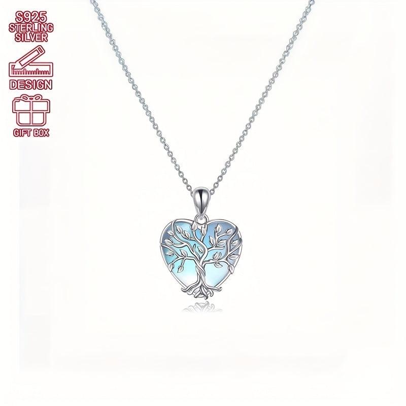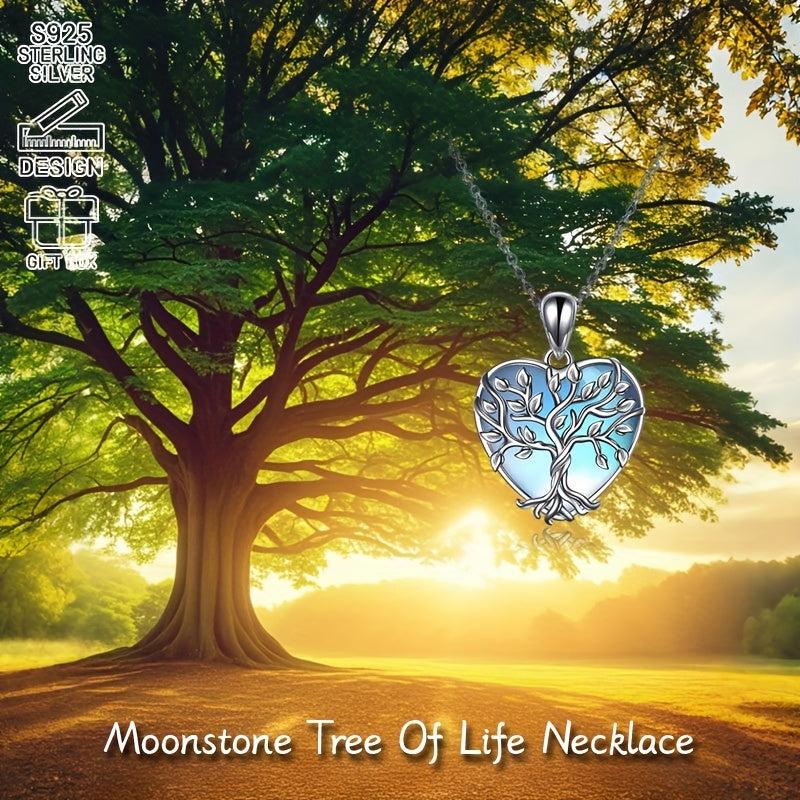 This stunning necklace features a tree of life design with a moonstone in the center, set in 925 sterling silver.