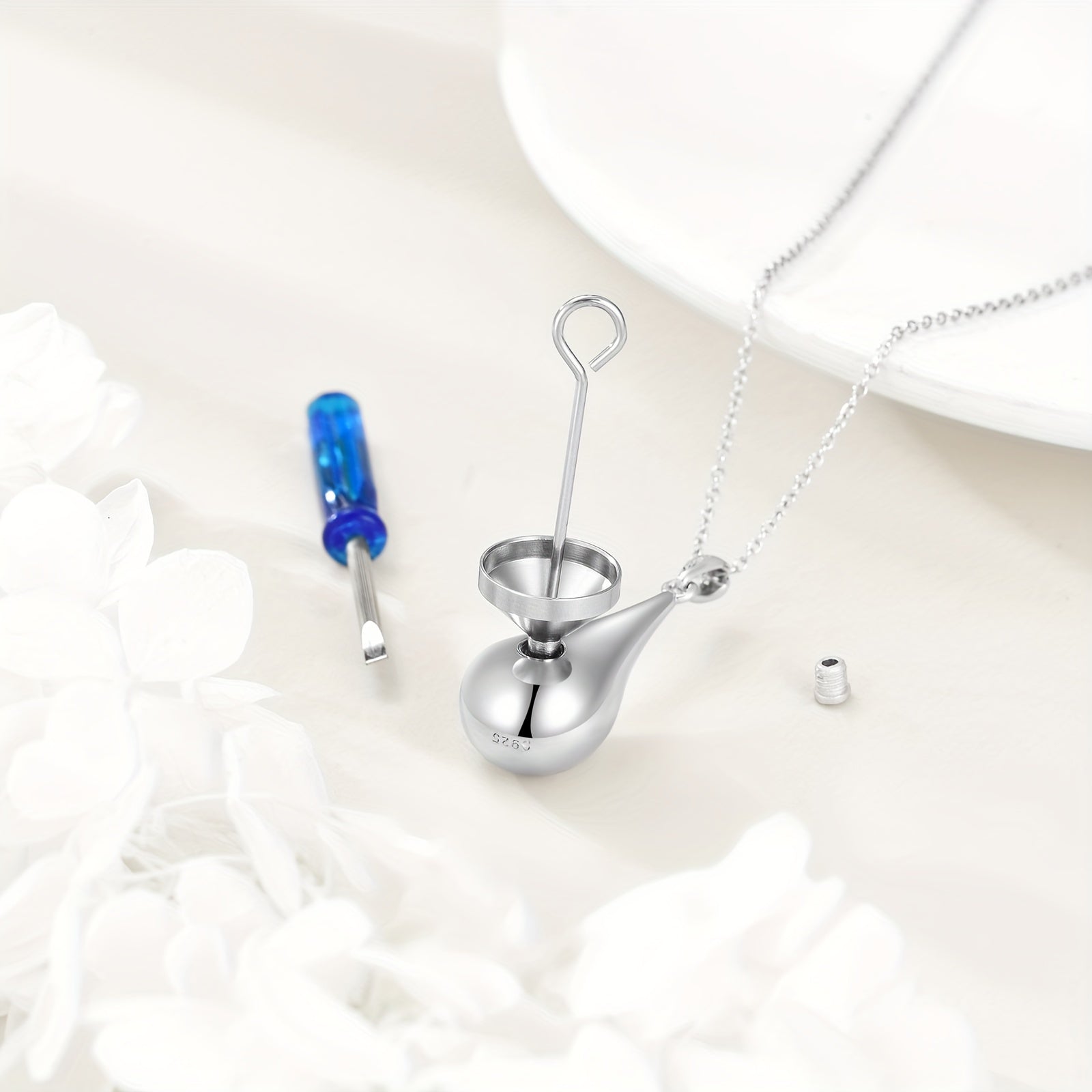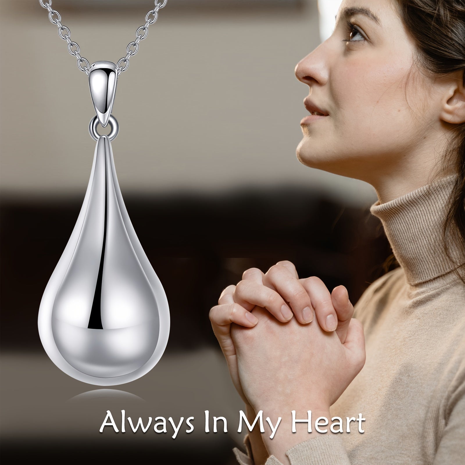Halten Sie Ihren geliebten Menschen mit dieser eleganten Tränen -Urnen -Halskette am Herzen. Dieser Speicherschmuck ist so konzipiert, dass Asche oder andere kleine Andenken sicher im Inneren halten.