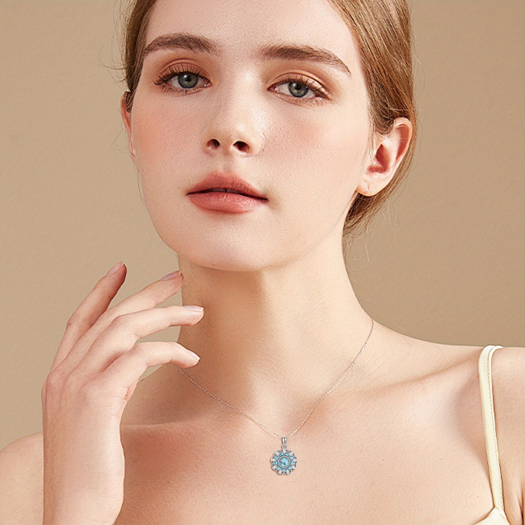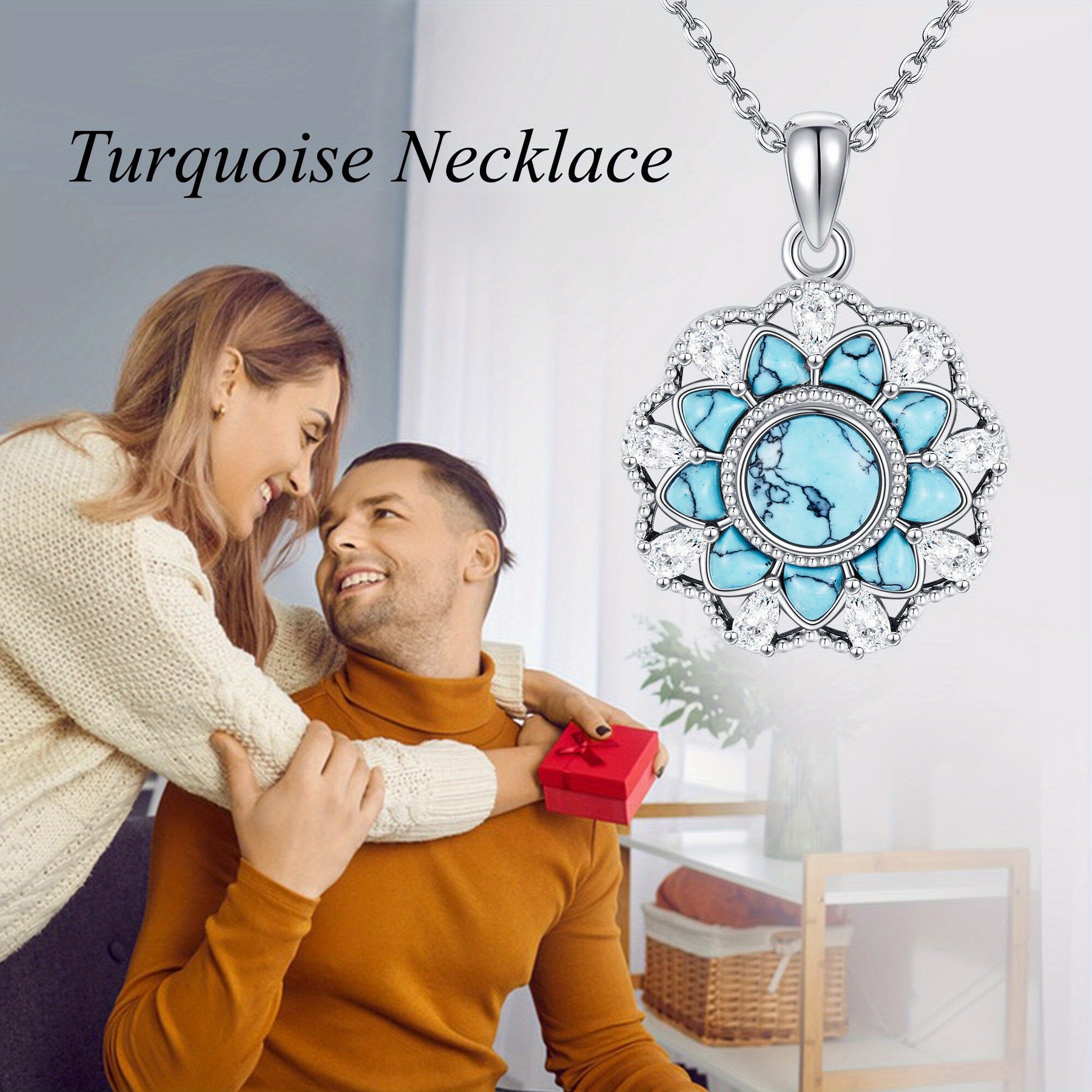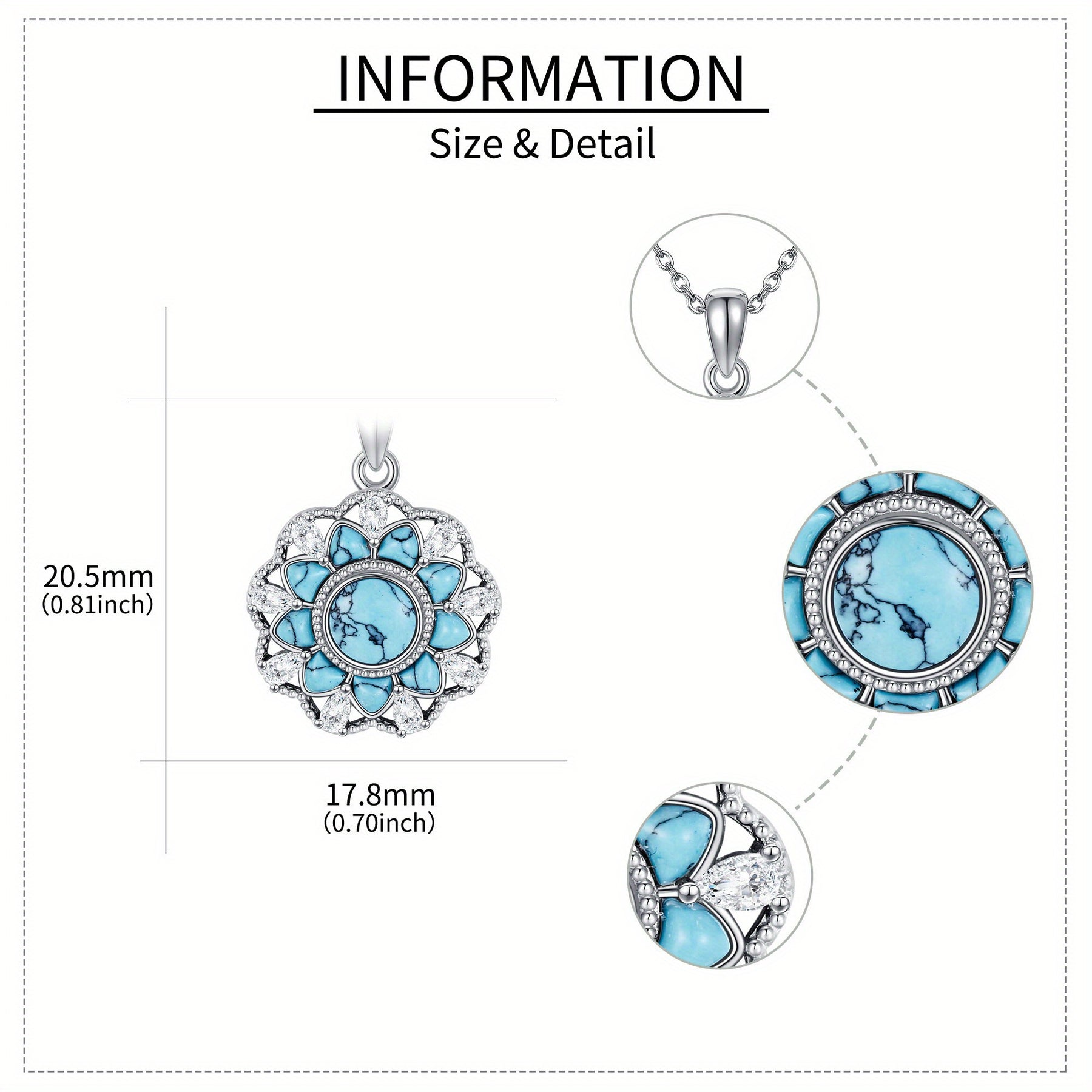 Fügen Sie mit dieser atemberaubenden türkisfarbenen Halskette einen Hauch von Eleganz hinzu. Das komplizierte Blumendesign und das 925 Sterlingsilber machen es zu einem perfekten Accessoire für Frauen und Mädchen.