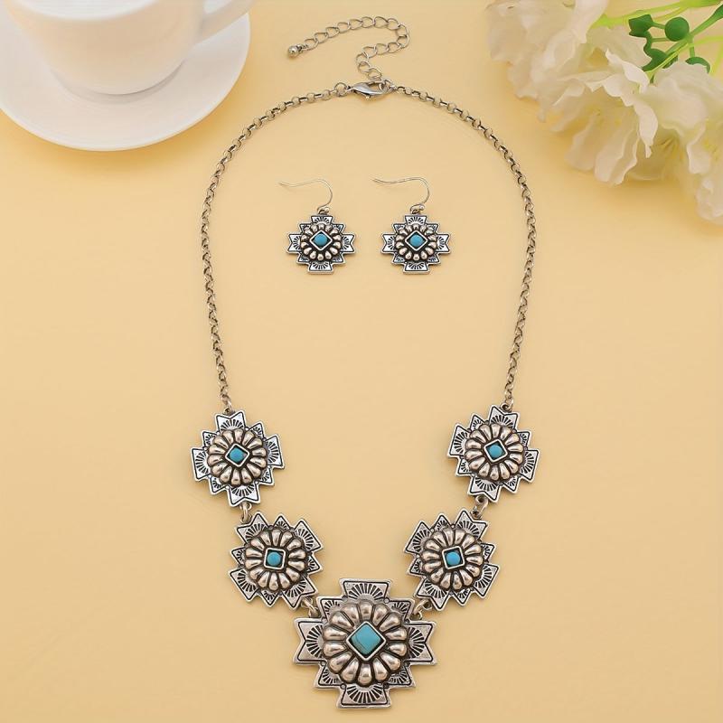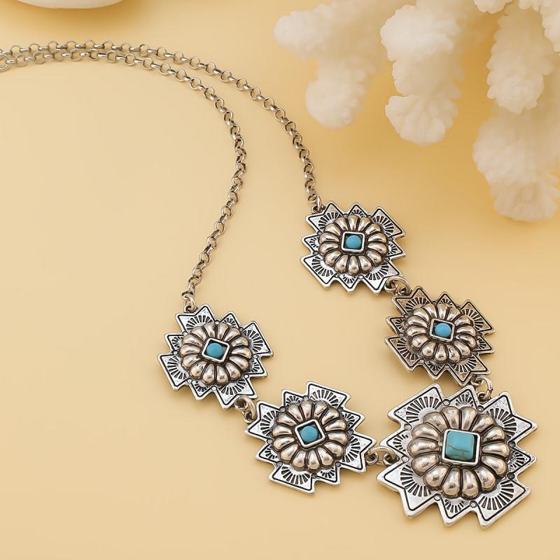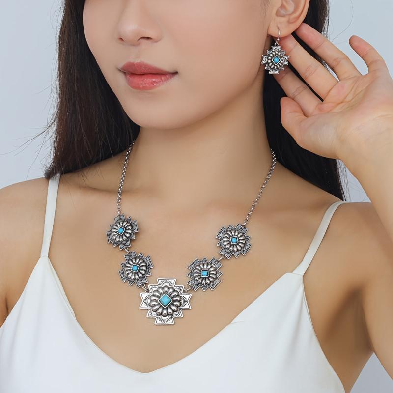 Elegant lady pendant necklace with intricate turquoise inlays.