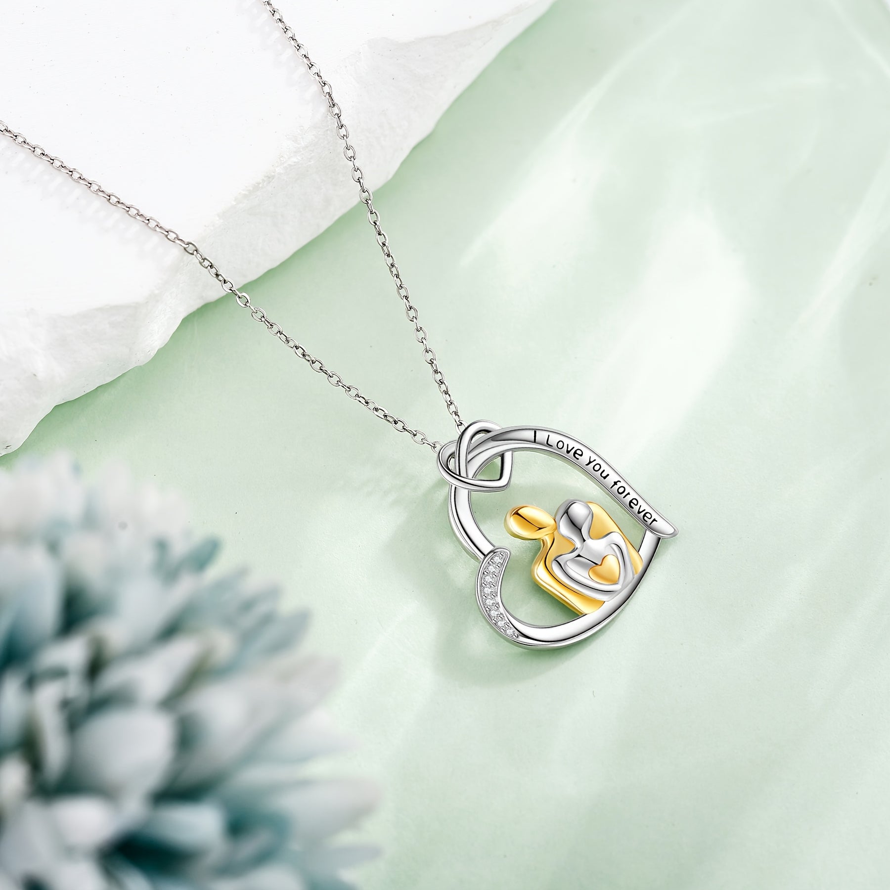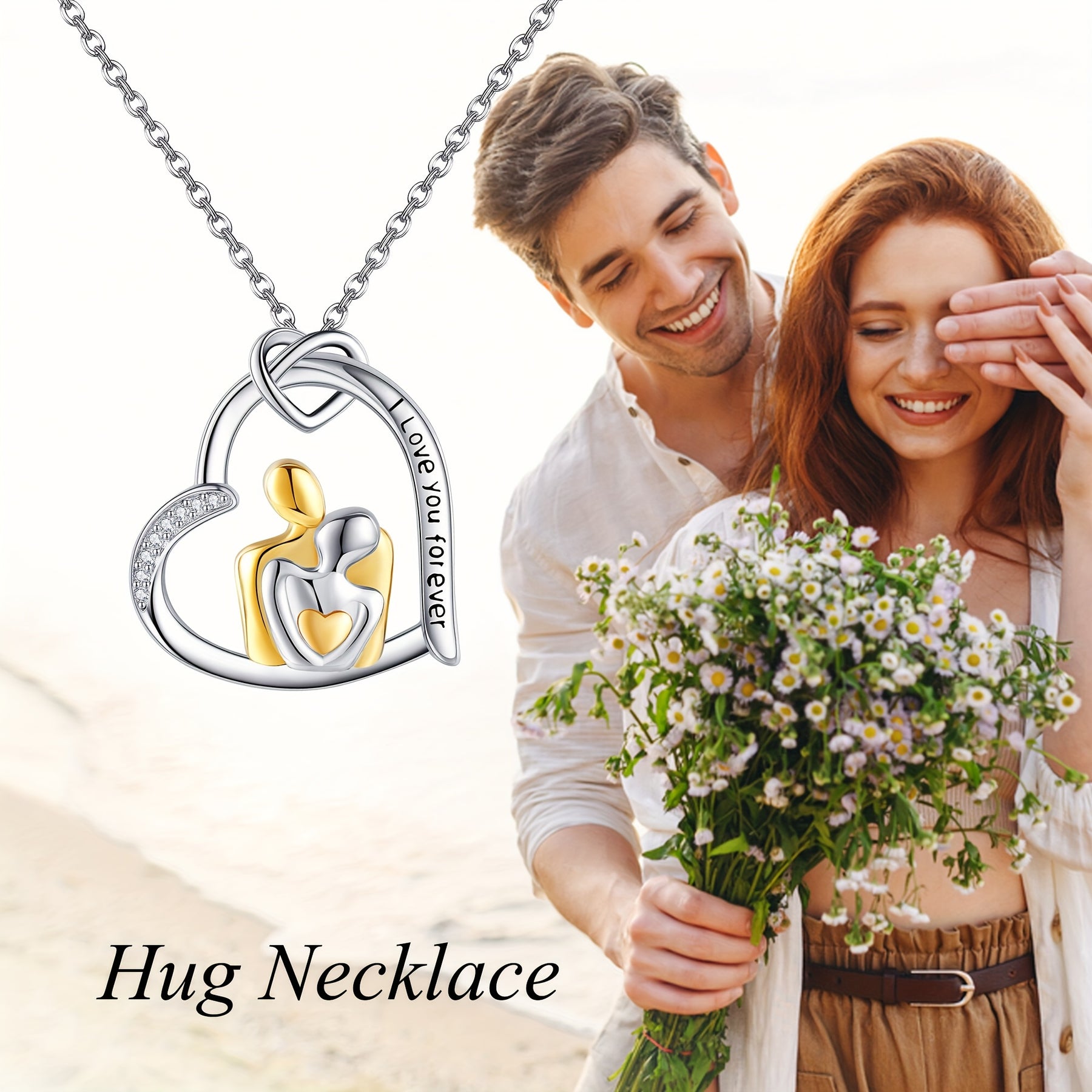 Hugging Pendant Necklace S925 Sterling Silver Heart Couples Necklace
