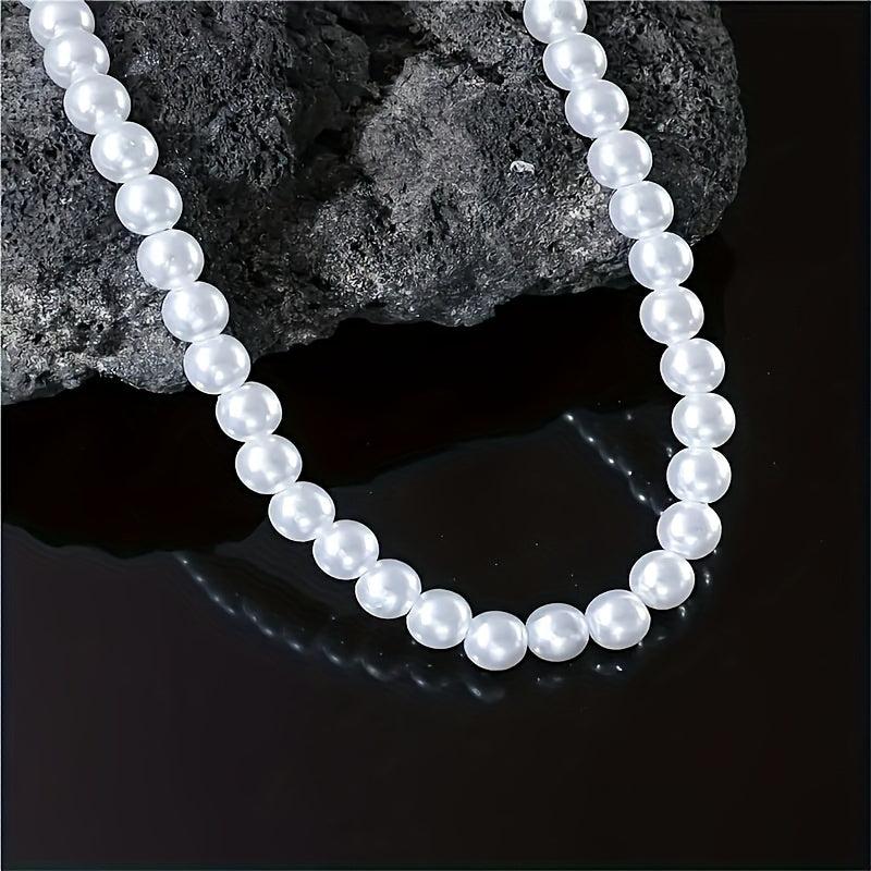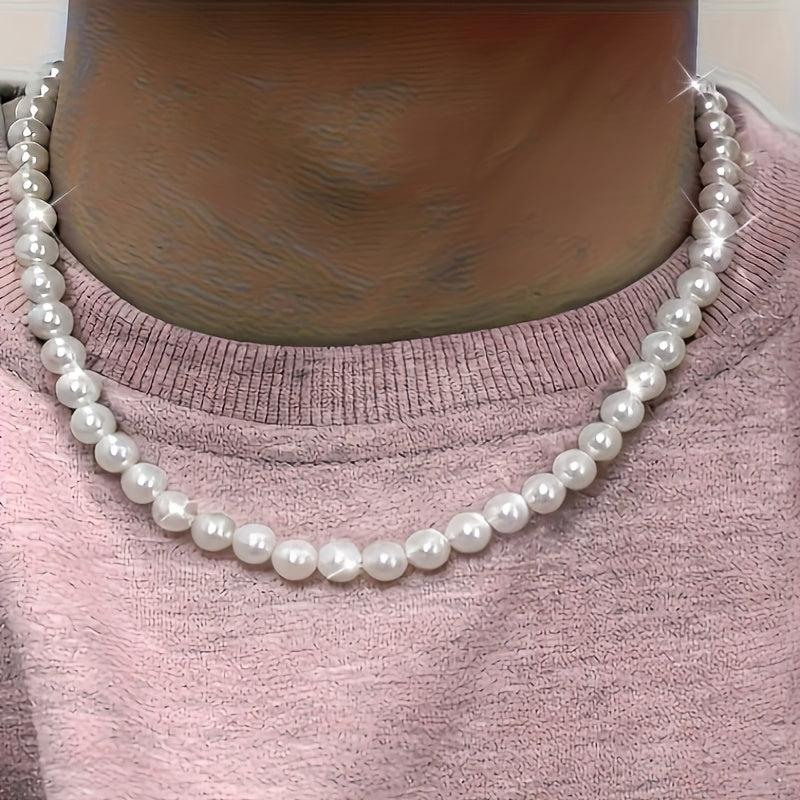 This unisex faux pearl necklace is a versatile accessory perfect for daily wear or special occasions. Made of plastic, it is a great gift for mothers and can be worn in all seasons.