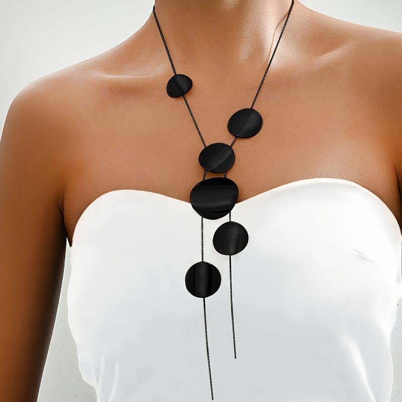 This minimalist Y shape necklace features a geometric circle pendant with 3 interconnected links. It is versatile for daily wear and parties year-round, adding a touch of sophistication to your look.