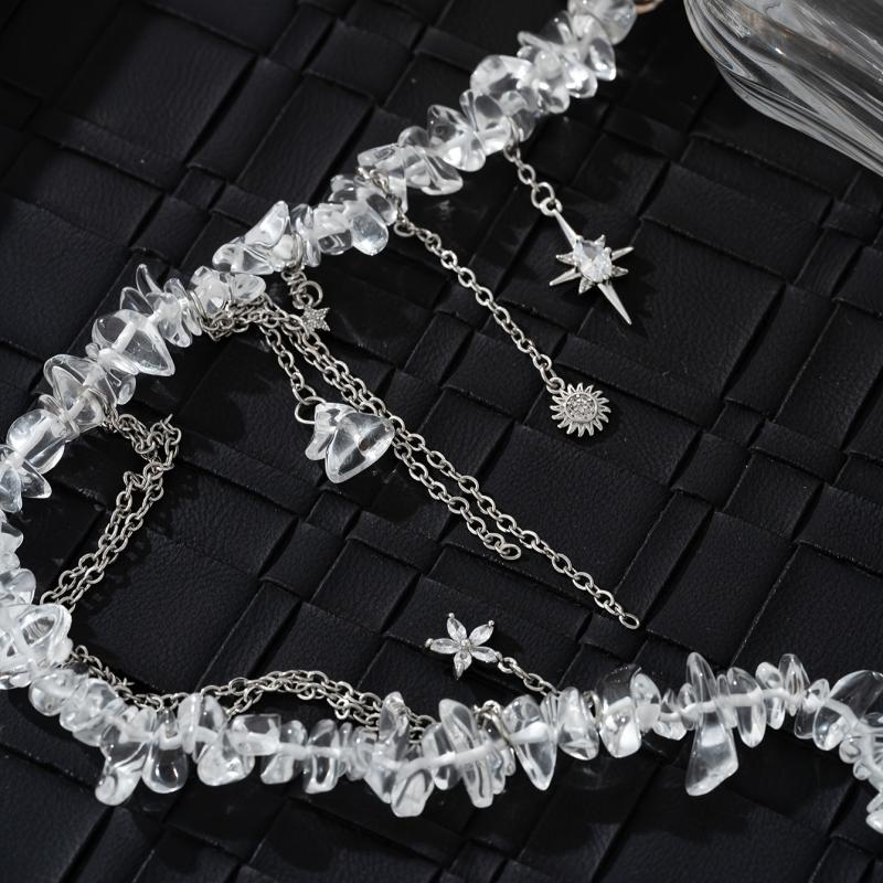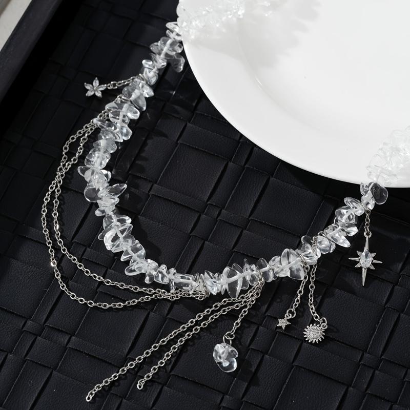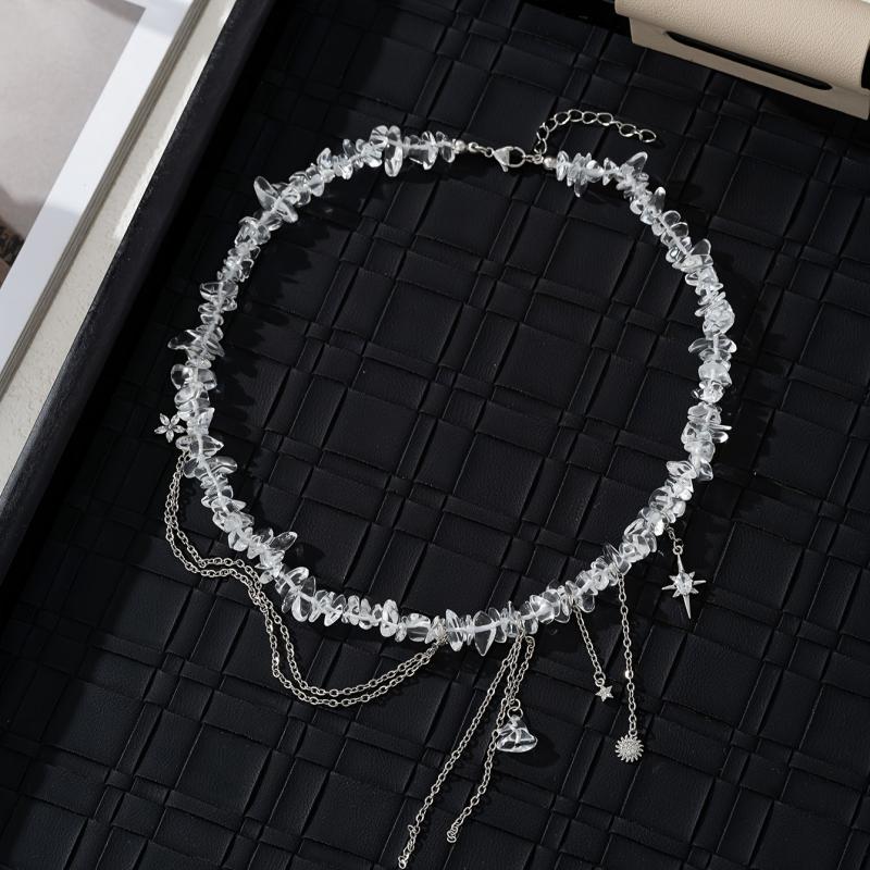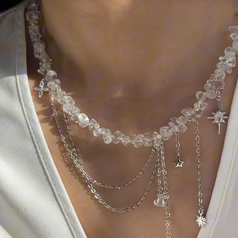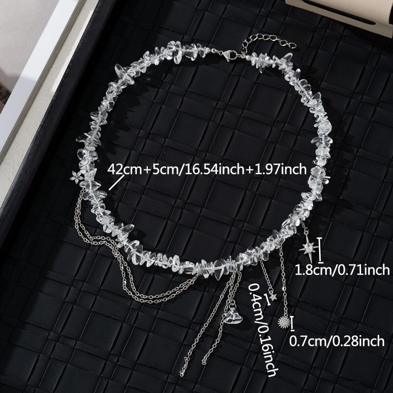 Add a touch of creative flair to your outfit with this unique pendant necklace featuring irregular stone bead and tassel design. Perfect for parties, banquets, or music events.