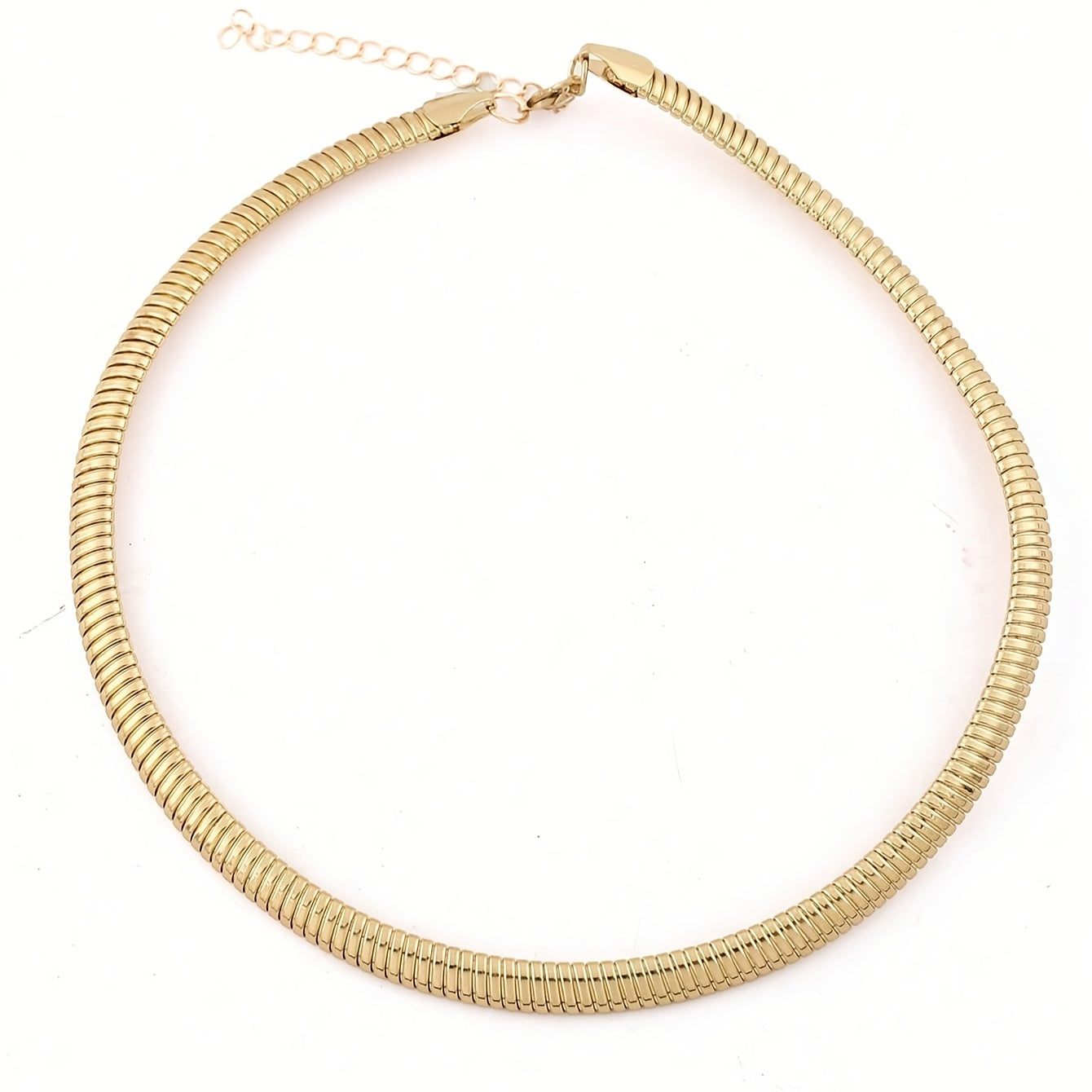 Edgy metallic finish choker perfect for everyday or party wear. This bold textured ribbed choker is a versatile accessory for year-round style.