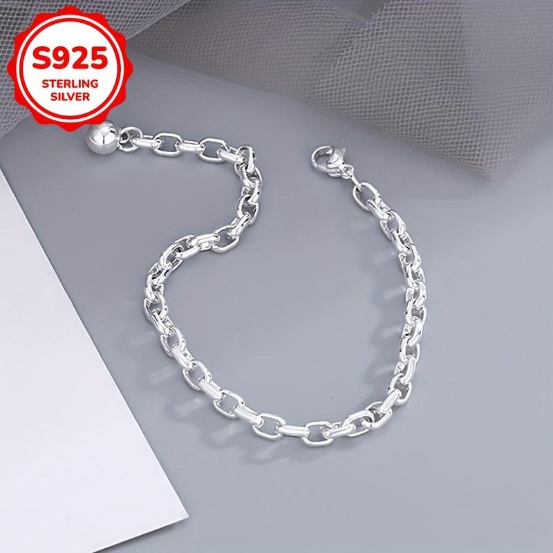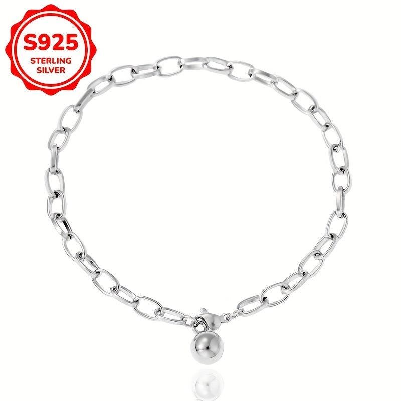 Add a touch of elegance to your look with this minimalist S925 silver bracelet. The thick chain design with a round ball charm makes it a versatile accessory for daily wear and holidays.