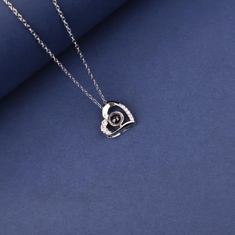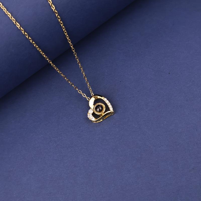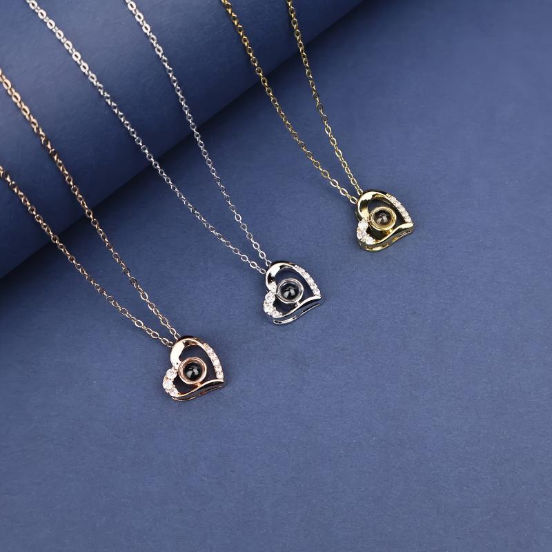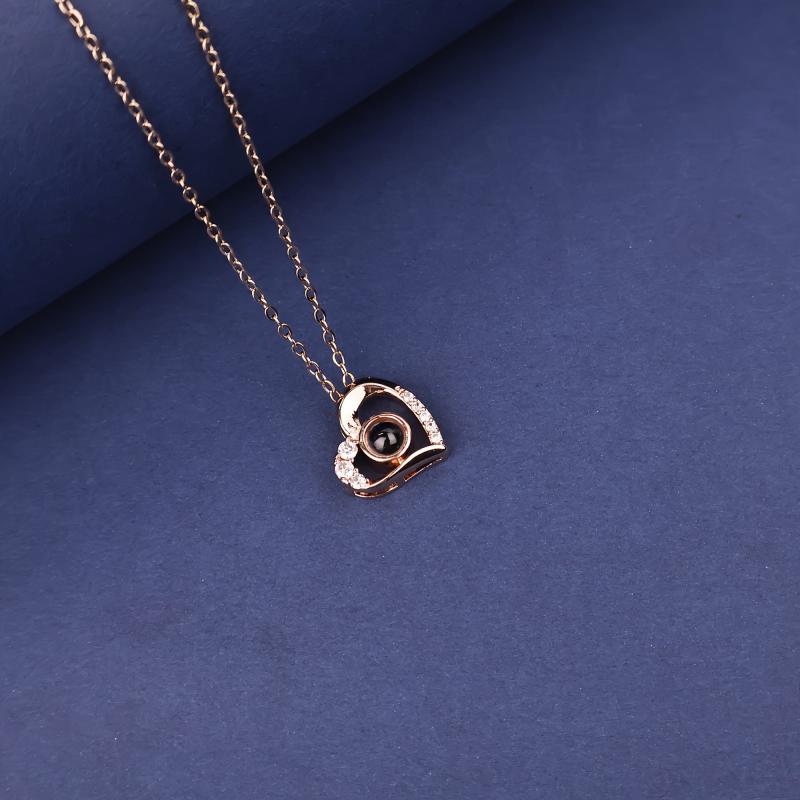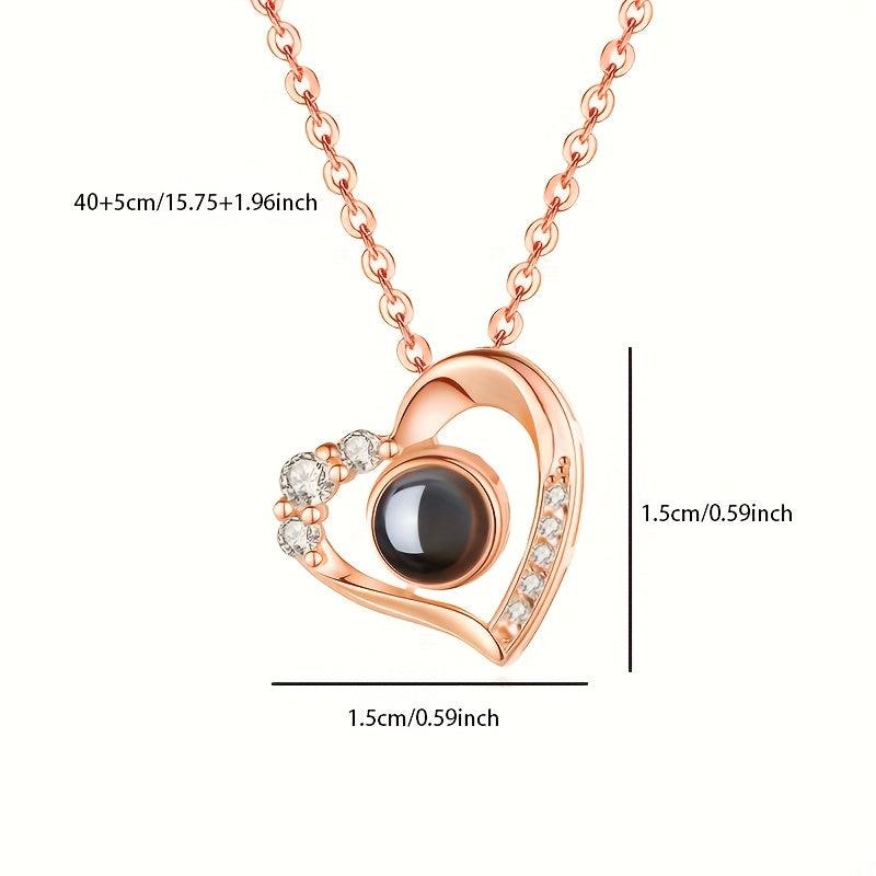 YouCons Photo Projection Heart Pendant Necklace Copper & Titanium Steel Chain