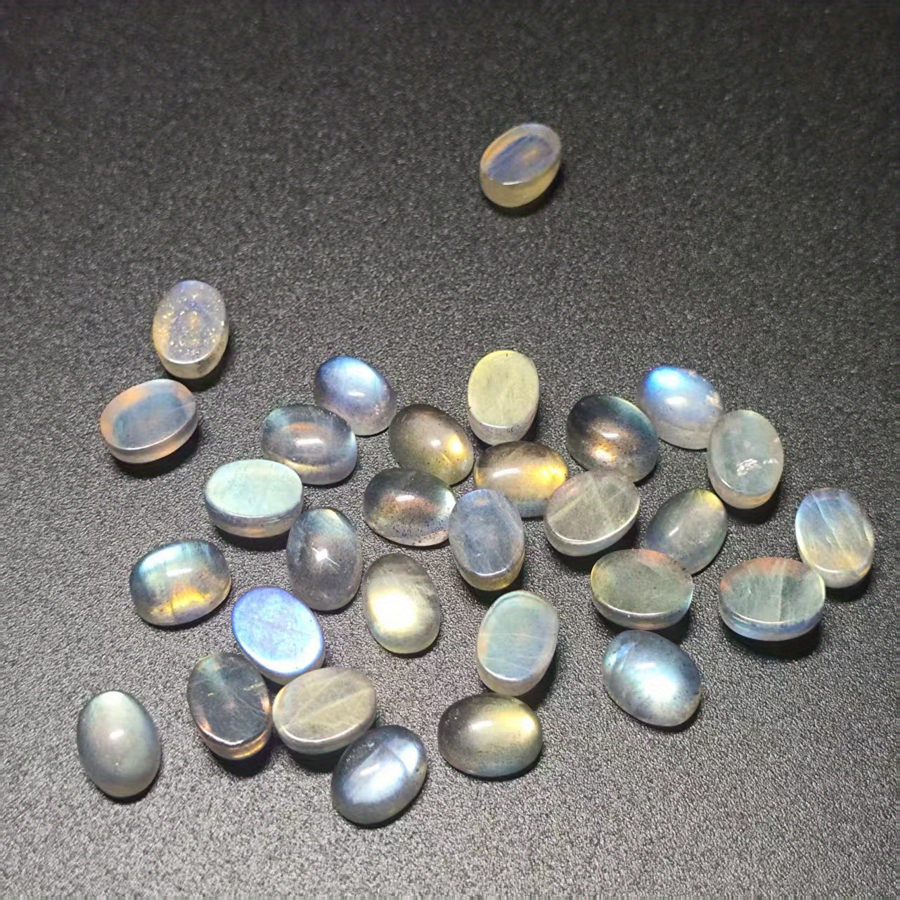 This set includes 3 small-sized natural moonstones and sparkling labradorite cabochons, perfect for DIY jewelry making projects.