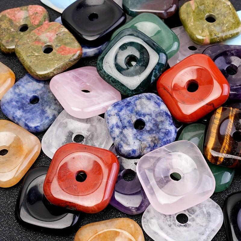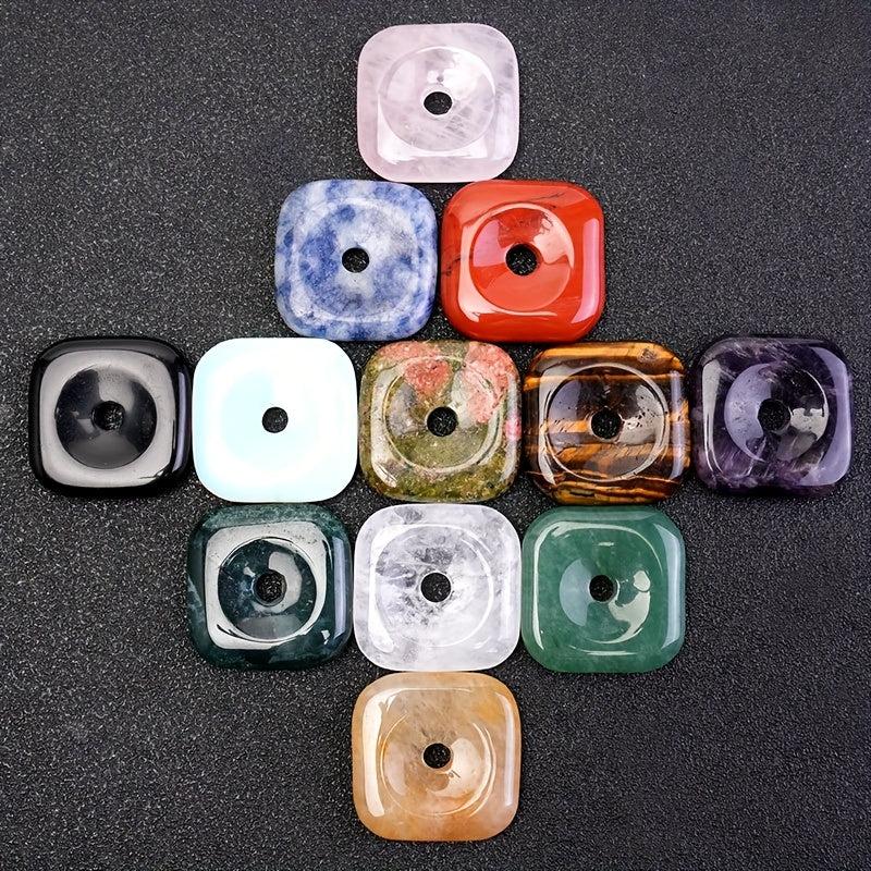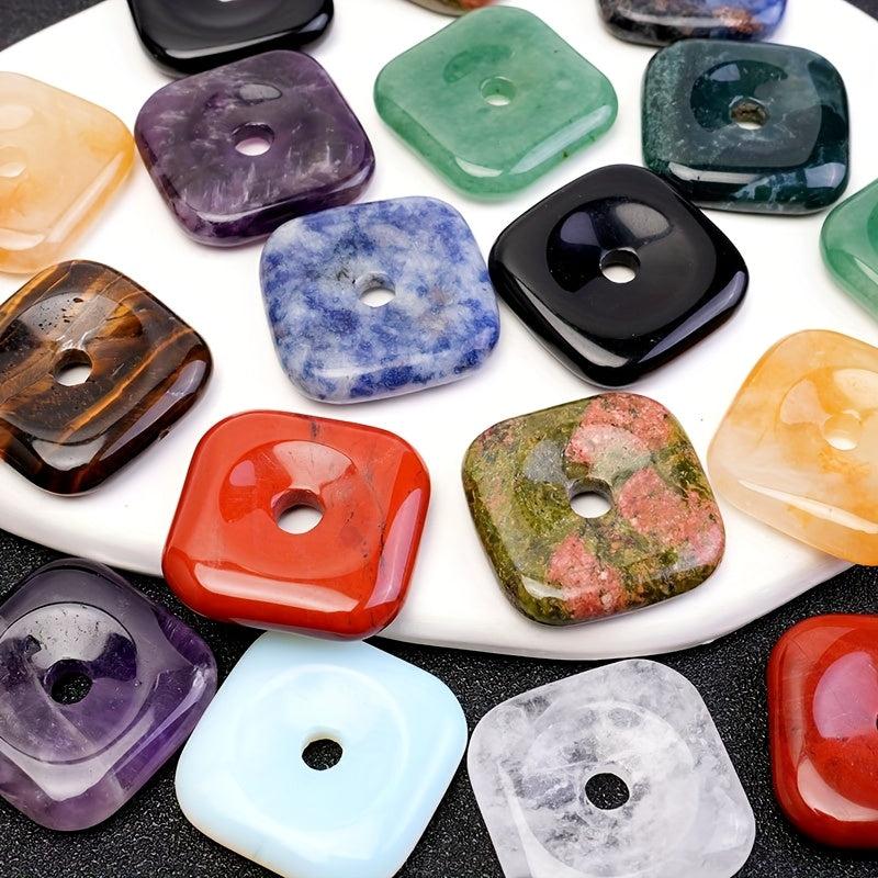 These 30mm natural stone square pendants are polished and hollowed, making them perfect for creating unique jewelry pieces. They are an ideal gift for family and friends, and are perfect for Christmas.