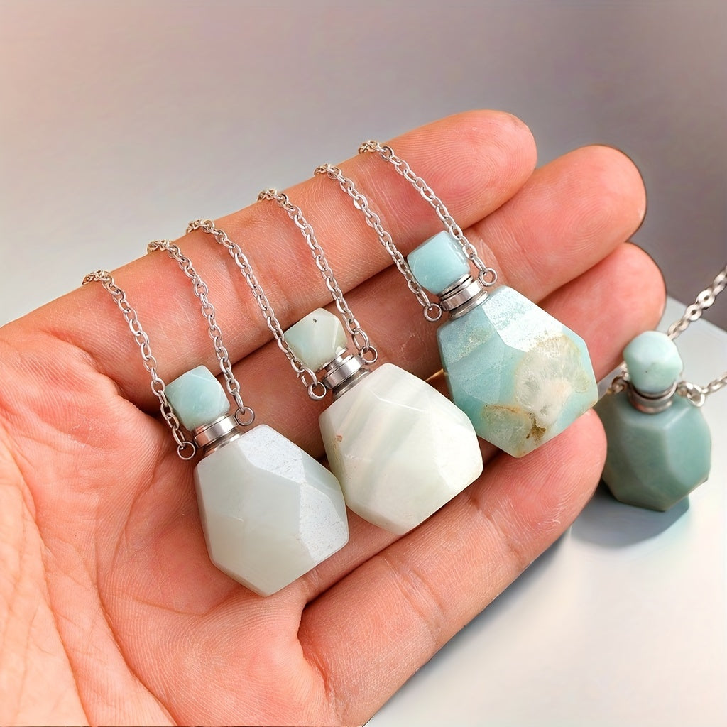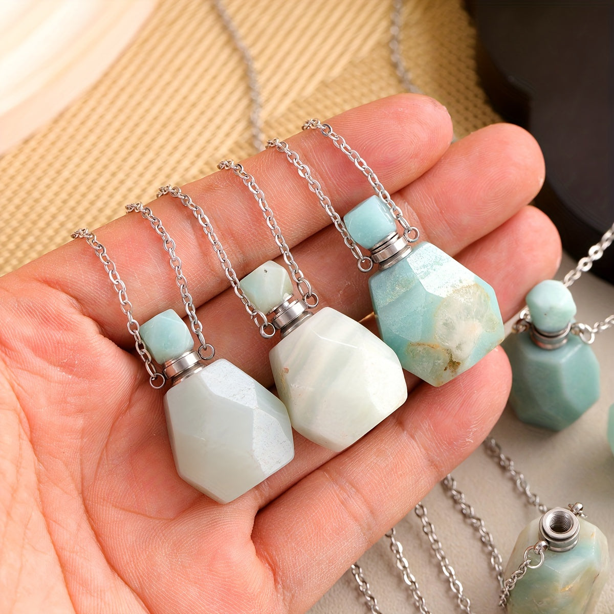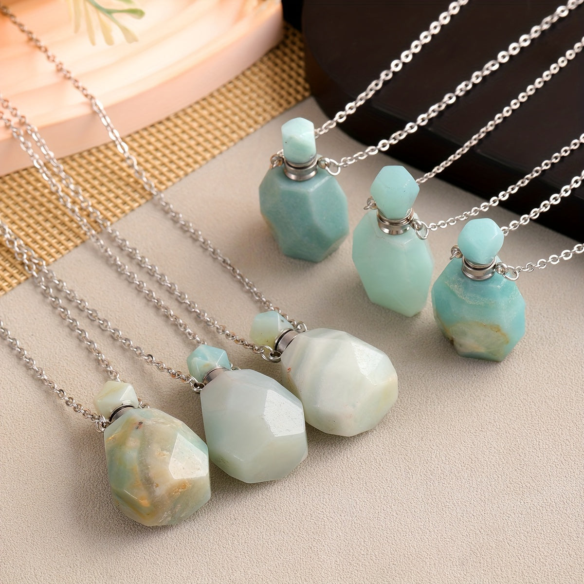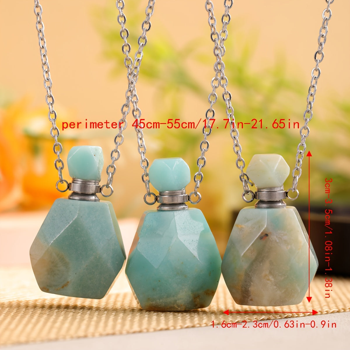 This set includes 3 natural Tianhe stone pendant necklaces featuring teal & marble perfume bottle charms with crystal beads. Perfect for birthdays and holidays, ideal for DIY jewelry.