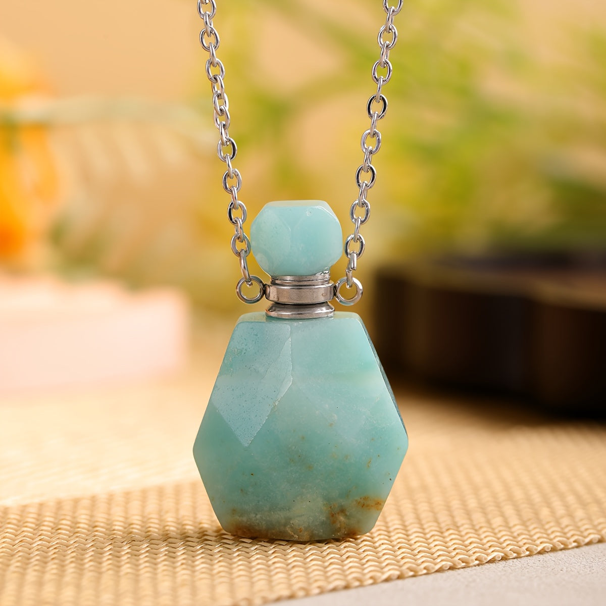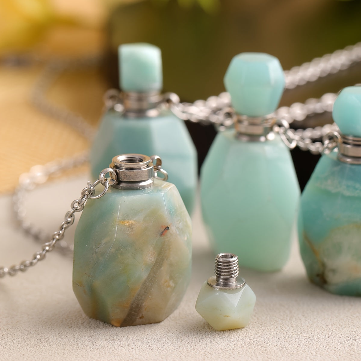 3pcs Tianhe Stone Pendant Necklaces Teal & Marble Perfume Bottle Charms