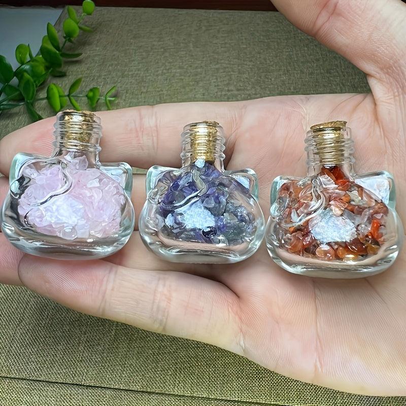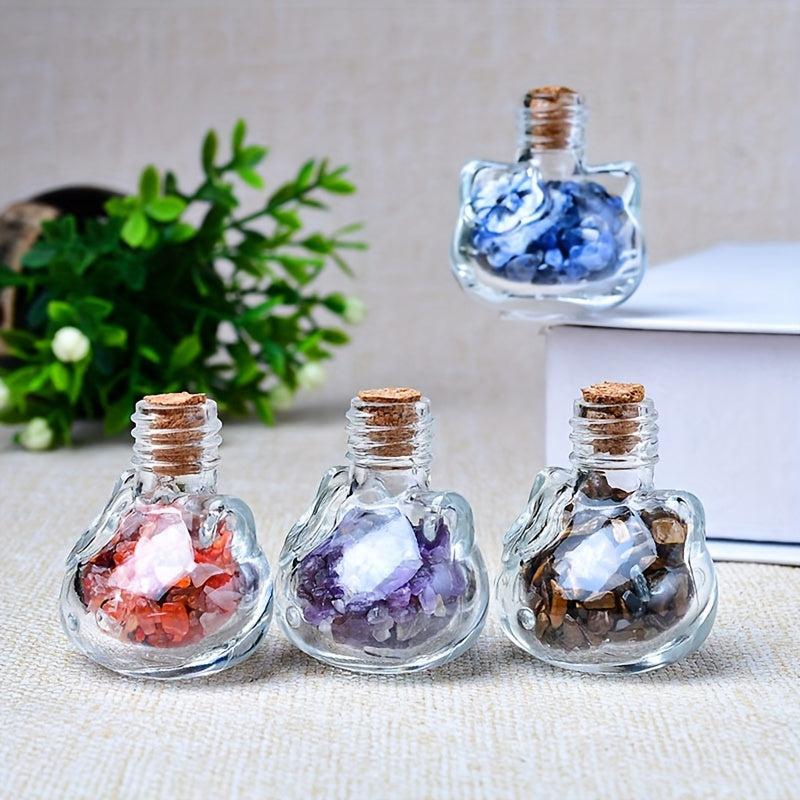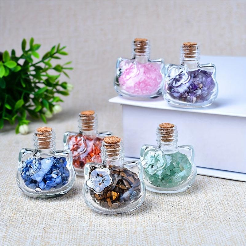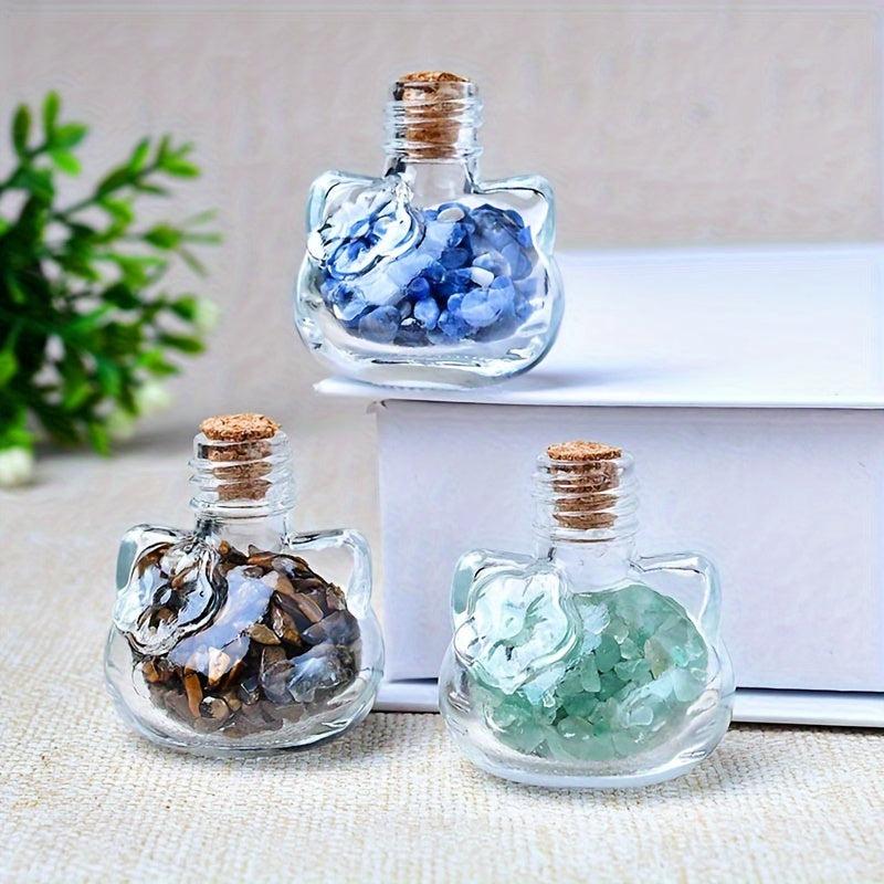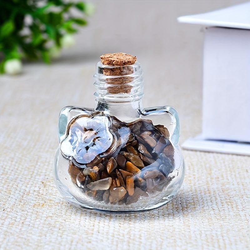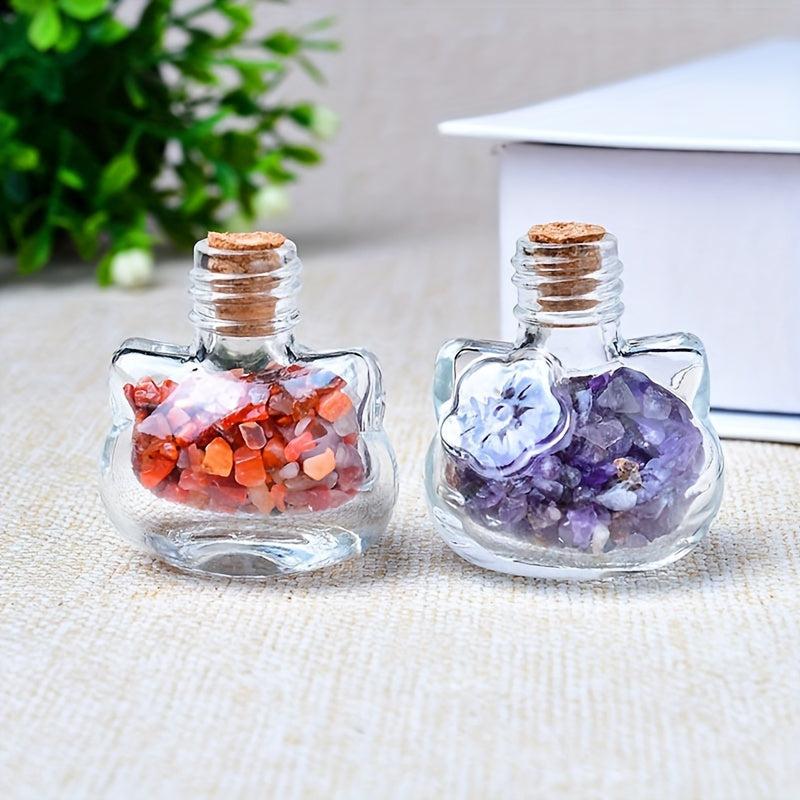Cat Shaped Natural Crystal Agate Gravel in Transparent Bottle
