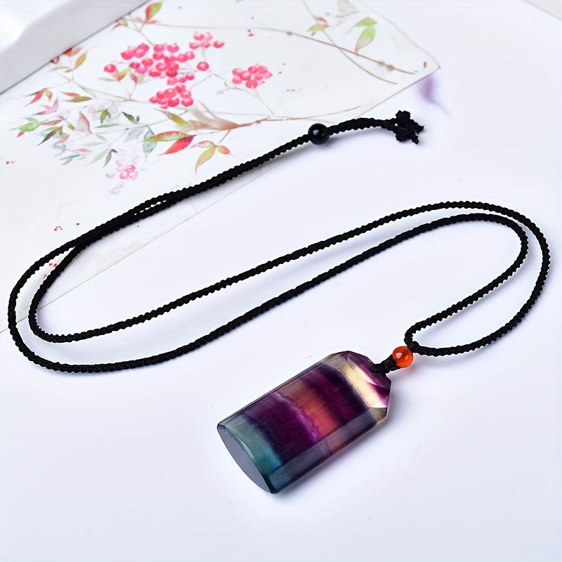 Add a touch of bohemian style to your look with this exquisite crystal pendant necklace featuring a gradient of vibrant colors.
