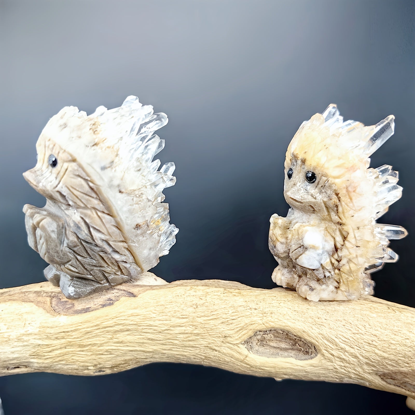 This natural hedgehog carving is a charming cluster that adds a unique touch to your home decor. It features irregular cracks and small nuances that enhance its natural beauty.