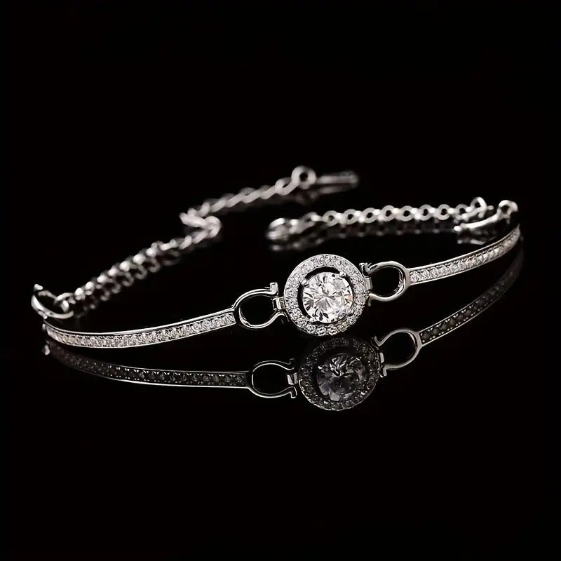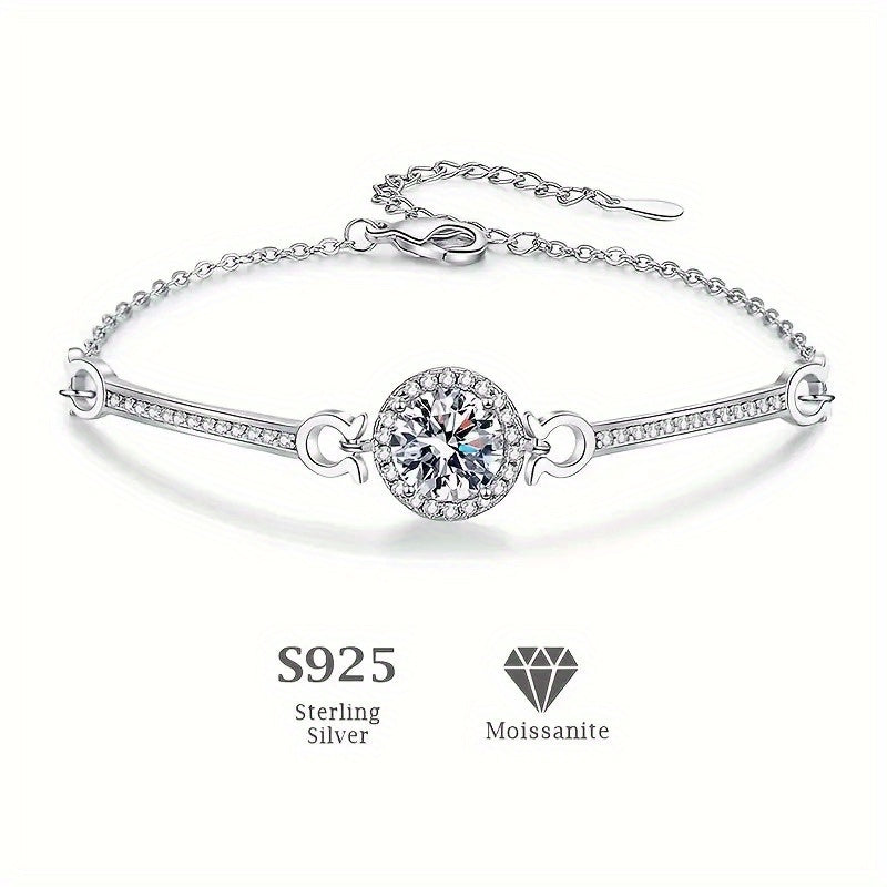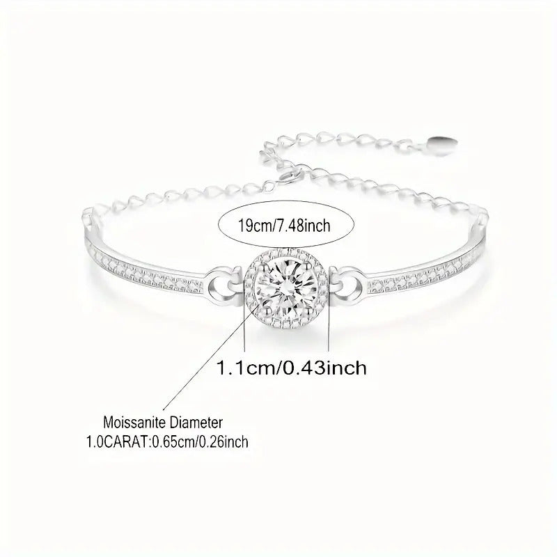Dieses atemberaubende 925 Silberarmband verfügt über einen 1CT -Moissanit -Stein mit D -Farbe und VVS1 -Klarheit in einem runden Schnitt. Es ist verstellbar, dass es bequem passt und ein perfektes Weihnachts- oder Jubiläumsgeschenk macht.