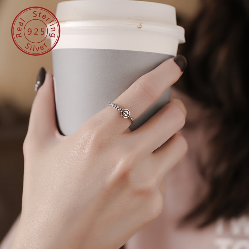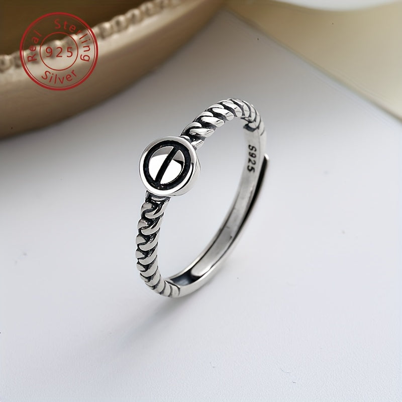 Dieser offene Ring besteht aus 925 Sterlingsilber mit einem minimalistischen geometrischen Design. Es ist ein stilvolles und vielseitiges Accessoire, das so eingestellt werden kann, dass sie eine beliebige Fingergröße entsprechen.