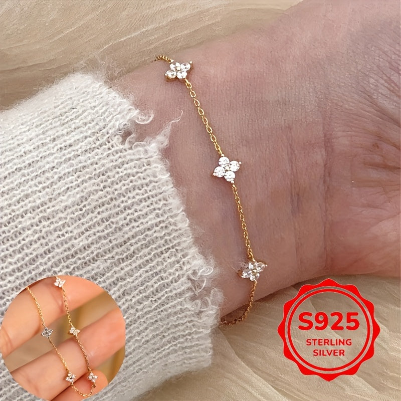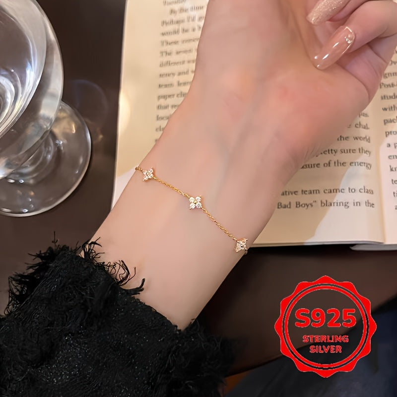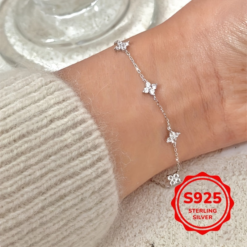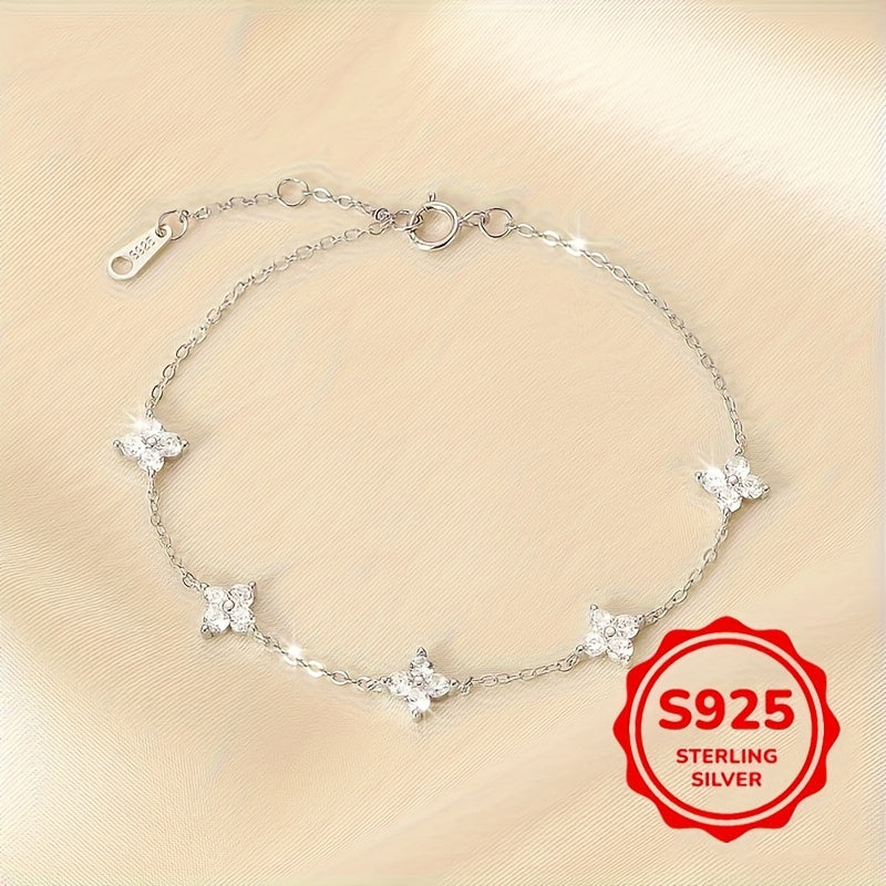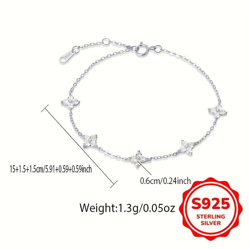 Elegantes und leichtes Armband mit einem vollen Stern -4 -Blatt -Klee -Design mit synthetischer Zirkonia. Perfekt für tägliche Verschleiß und Geschenk.