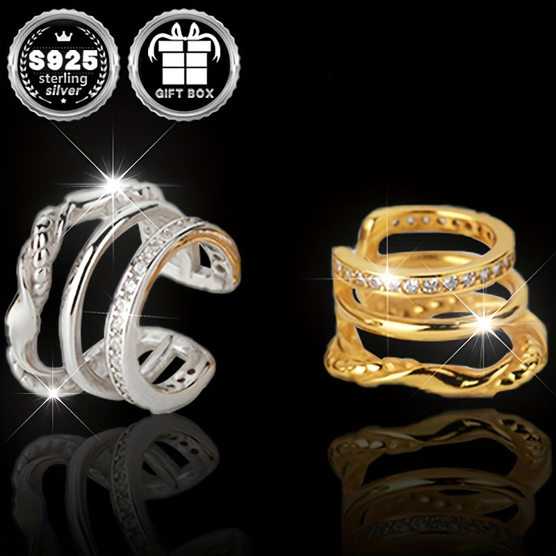 925 Silver Hollow Ear Clip Twist Wire Earrings